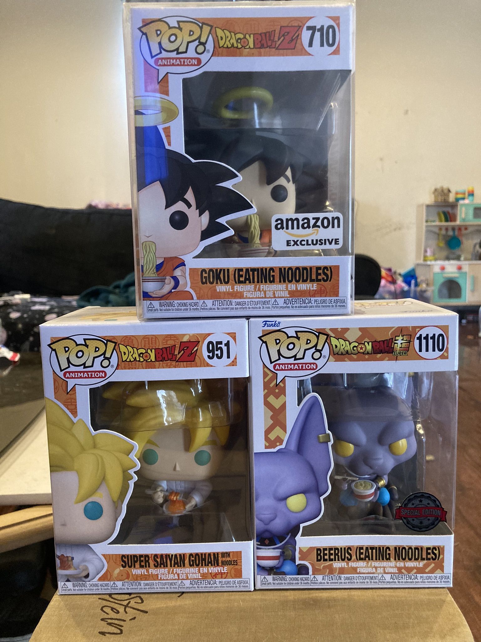 Goku, Gohan, & Beerus Eating Noodles Funkos