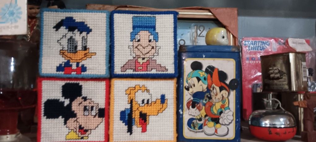 4 Handmade Disney character cubes. Mickey & Minnie tin container