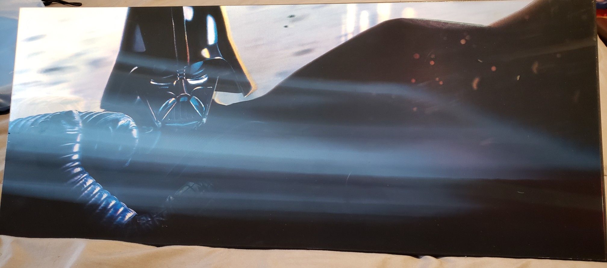 Briefly used and in excellent condition. Measures: 27" long x 11.5" tall. Beautiful scene of tactical Darth Vader, then move slightly to see his light Saber electrify the piece in 3D. A must have for every Star Wars fan! Price is firm. Pick up only. Cash only.
