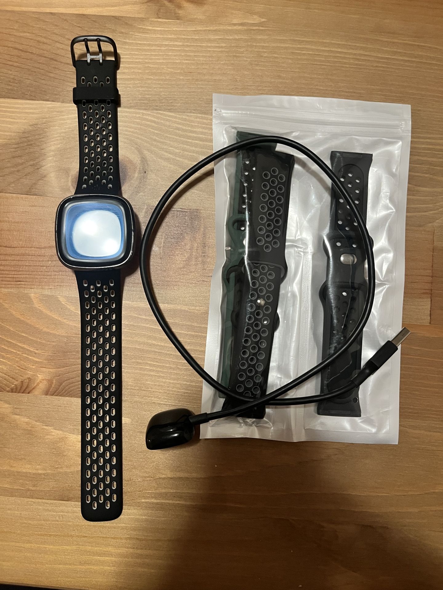 Used Fitbit Sense with original charger and 3 spare watch bands. Has some minor scratches to the face due to normal wear, but still works perfectly.