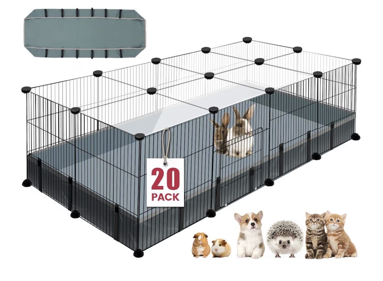 New in the box 20 Panels Small Animal Playpen, 48" x 24" x 16" Pet Playpen with Waterproof Mat, C&C Cage for Guinea Pigs, Rabbit/Bunny/Baby Chicken Cage,Bunny/Puppy/Chicken Pen Indoor Outdoor Portable Metal Fence