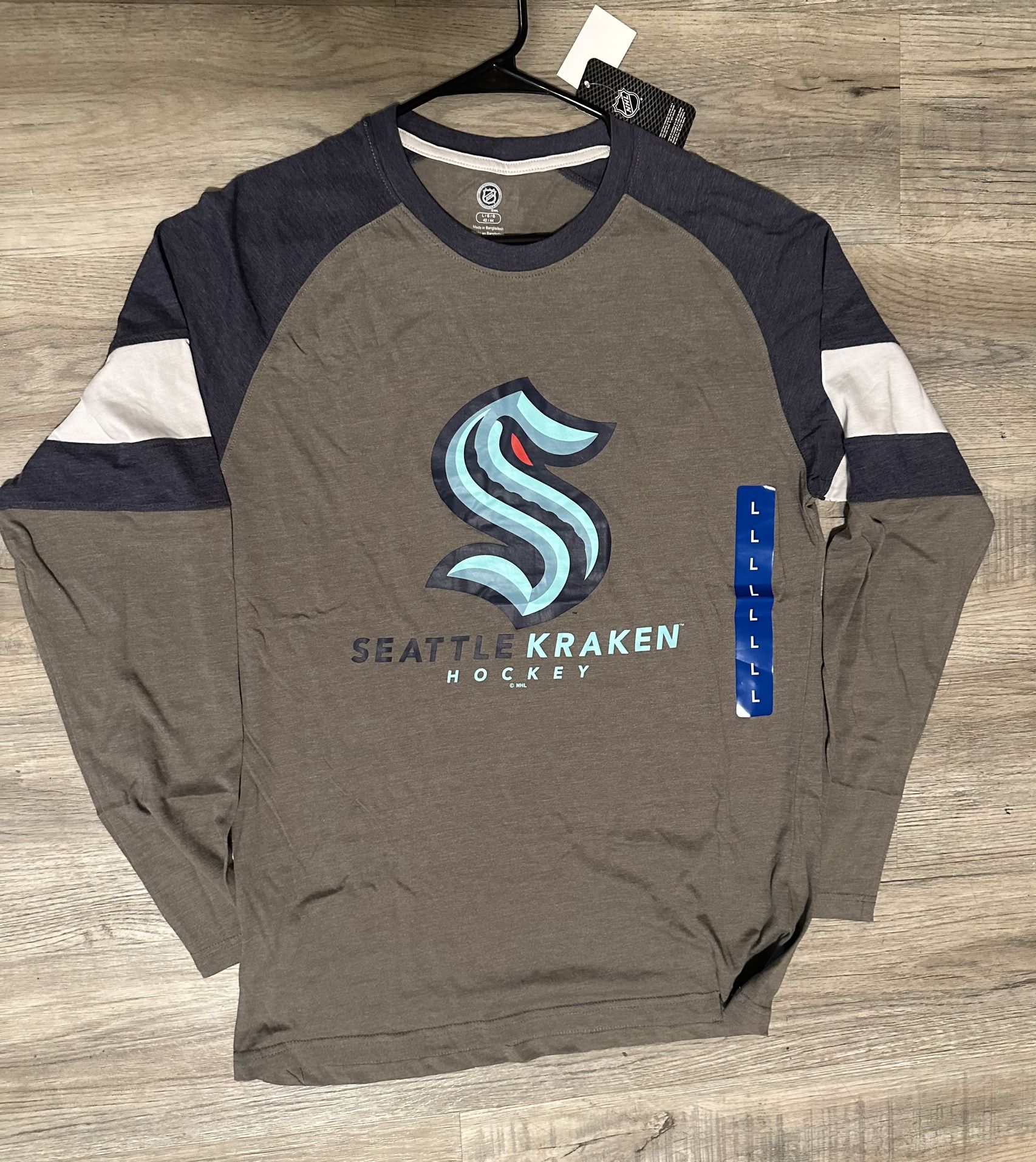 Brand new officially licensed NHL Kraken baseball style t shirt. I have multiple sizes. (S—-XL)