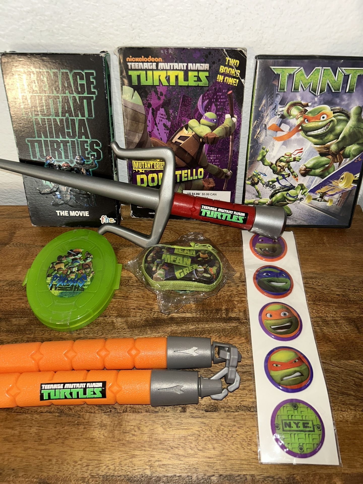 Ninja Turtles Vintage VHS, dvd, Book, Stickers & A few toys. (Silverado Ranch/Eastern)