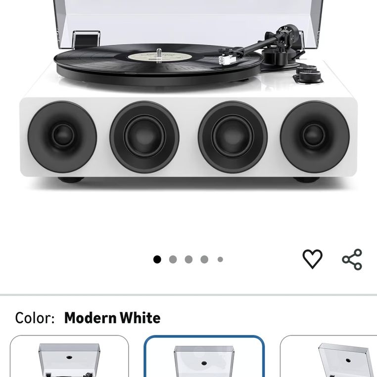 1 by ONE Record Player with Speakers, High Fidelity Vinyl Turntable with TI DSP, Magnetic Cartridge AT-3600L, Built-in Preamp, Adjustable Counterweight, 2-Speed Belt Drive, Modern White(few scratches)
