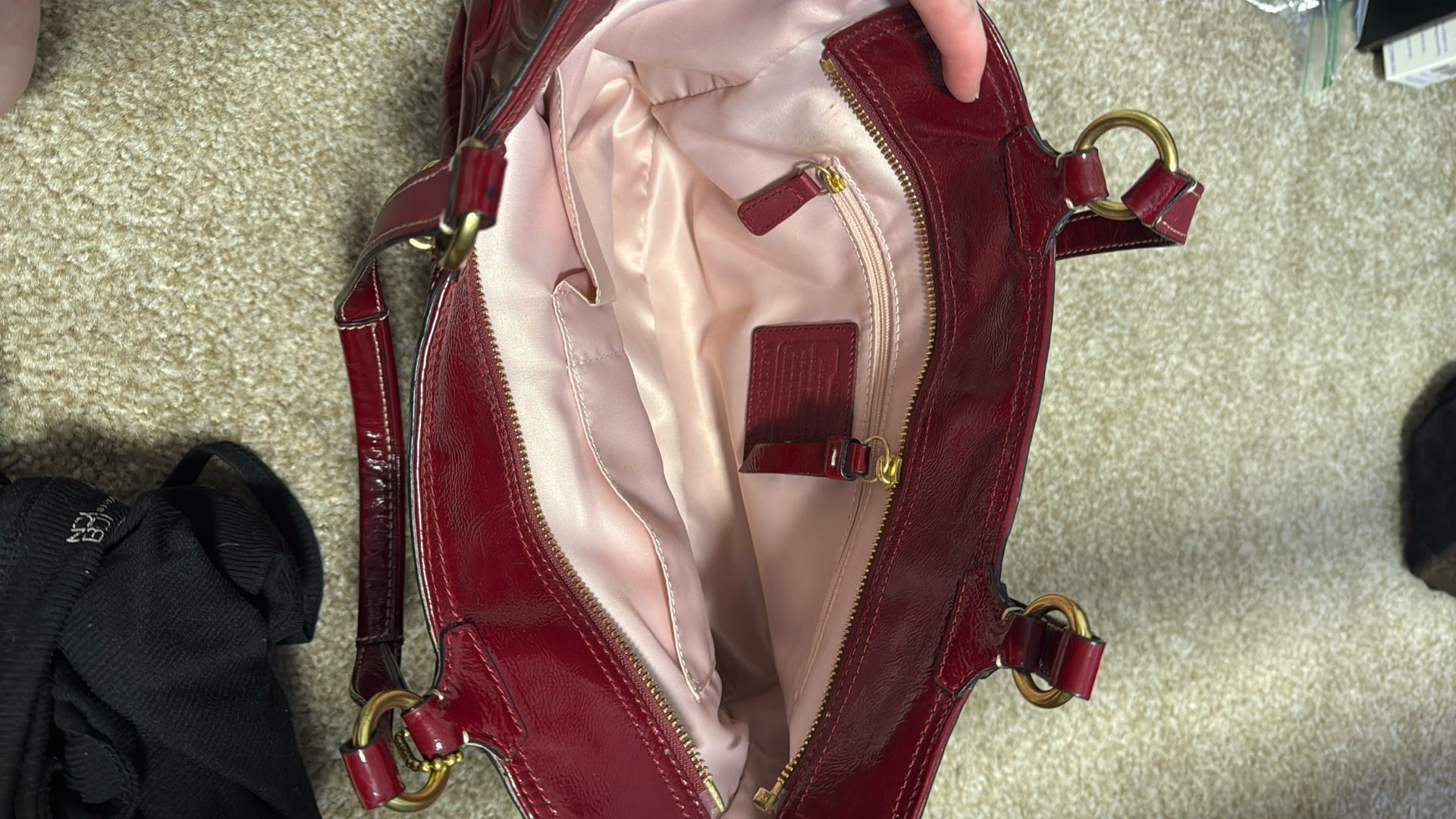 Asking $45 obo plz no low ball offers and serious inquiries only!! Thank you:) there’s a red leather coach wallet that looks good on outside but in rough shape on inside the im throwing that in with the purse no added price.