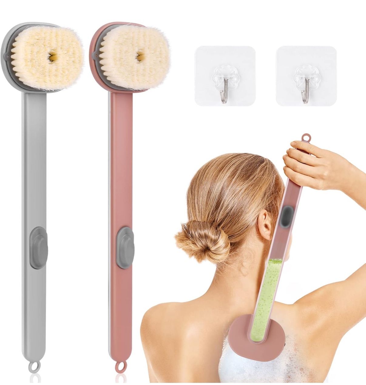 Material Plastic Brand Ainiv Color Grey & Pink Power Source Manual Product Benefits Massaging, Rejuvenating Skin Type Sensitive đ§śăSOFT NYLON BRISTLESăThe bath brush is made of more than 1000 PBT microfibers, soft and non-invasive to the skin. It will not make you feel tingling and will not leave visible scratches on your skin. Comfy denser nylon bristles can protect sensitive skin and deeply clean dirt from the skin surface, perfect for relaxing muscles and relieve stress. đ§´ăSTORABLE BODY WASHăOur shower scrubber is built-in shower gel container. You can open the cover on top of the handle, pour the body wash into the handle to prevent excessive exposure to air, making it more hygienic and safer. When washing the body, just press the button on the handle, and the brush head will spray the built-in shower gel to achieve cleaning the back easily without help. đăDEEP CLEANINGăAiniv back scrubber with soft bristles is able to carry away dirt from the skin surface when it touches the skin, reducing damage to the skin and relieving itching and redness to achieve skin exfoliation and make you have a smooth skin. đăMASSAGE FOR RELAXATIONăBy rubbing the body back and forth repeatedly, this cleaning brush can play the role of massage. It can have a massage effect and relax the mind. Cleaning brush is the easiest and most timeless option for boosting lymph flow, and rejuvenating your body. âăEASY HANGING TO DRYăLong handled bath brush with non-porous sticky hook and convenient hanging hole design is easy hanging to dry. Just rinse after use and hang the brush up by the hole for drip drying or air drying. đăGUARANTEE AND RETURNă: đTipsđSqueeze during transportation may cause the bristles to be squashed. Don't worry, soaking in hot water can make it back to normal.Feel free to contact us if for any reason you are not completely satisfied with our Shower Brush, we will get back to you with an satisfying reply as soon as possibl