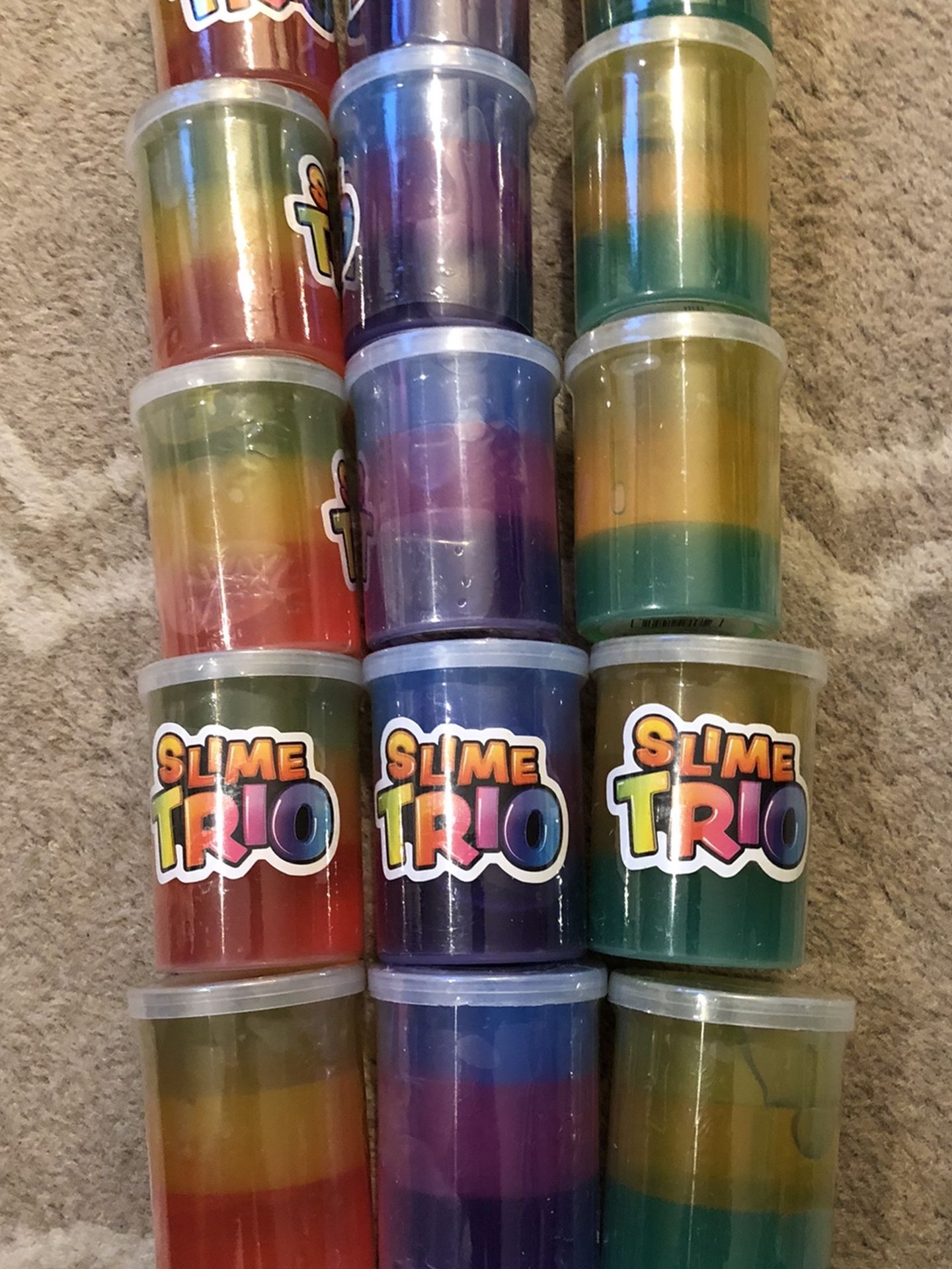 15 jars of slime trio. New and unopened. Must pick up in Mason. Get all 15 jars for $9.