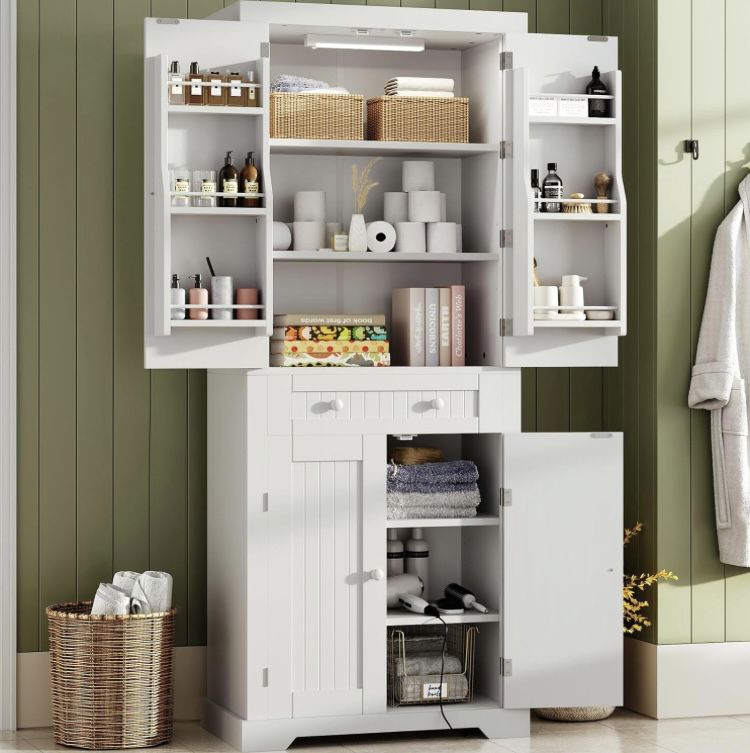 Bestier Pantry Cabinet, 72" Tall Kitchen Cabinet with Doors, 2 Adjustable Shelves & 1 Drawer, Kitchen Storage Cabinets with Motion Sensor Light, Frees
