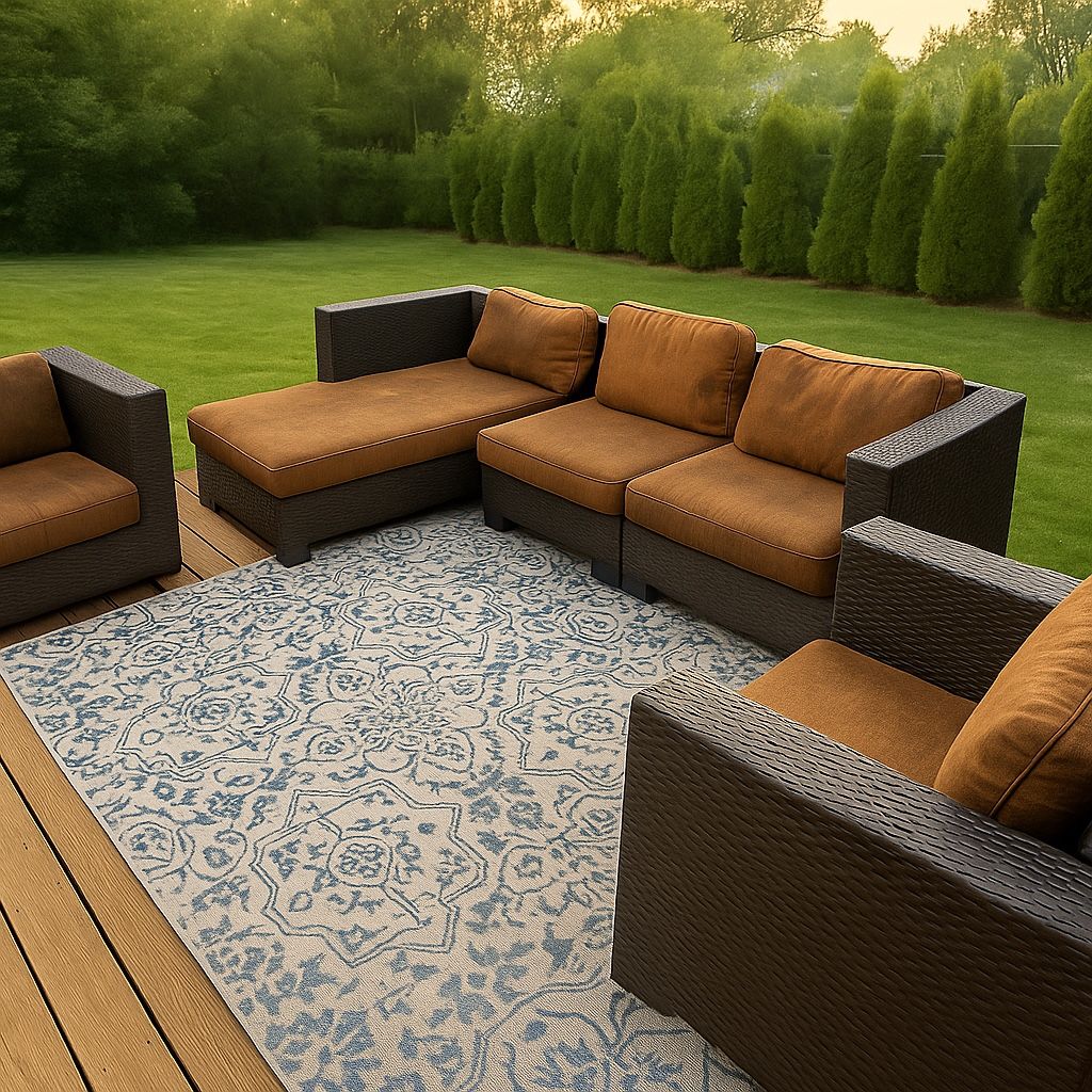 Outdoor Wicker Patio Set – Sofa + 2 Armchairs – Cushions Included