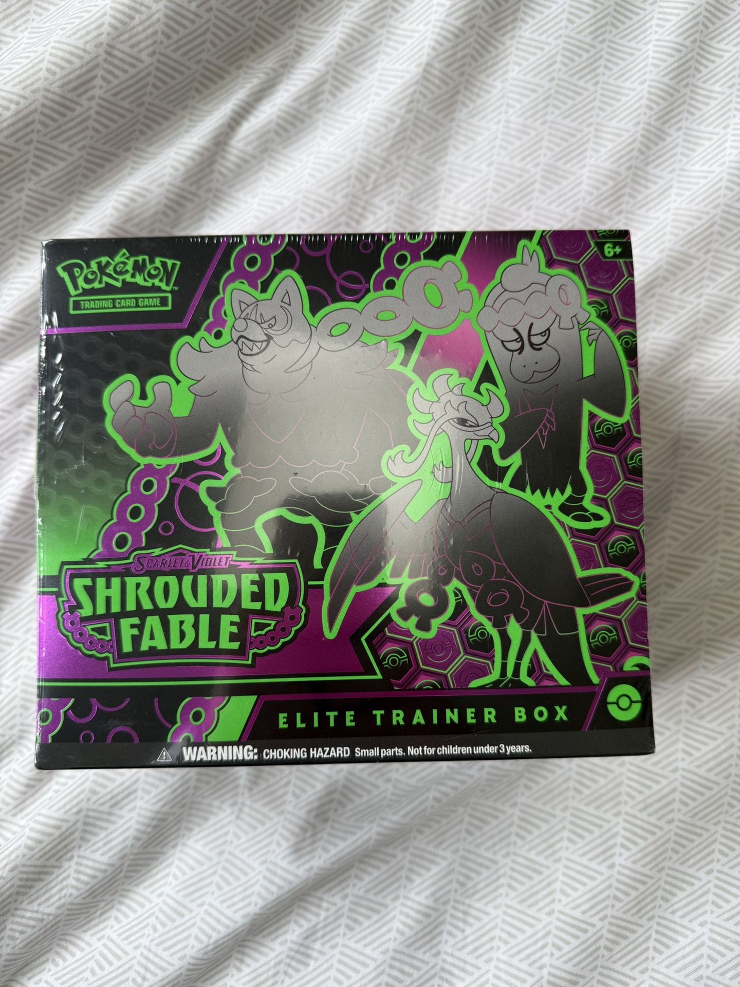 - The Pokémon TCG: Scarlet & Violet—Shrouded Fable Elite Trainer Box includes 9 Pokémon TCG: Scarlet & Violet—Shrouded Fable booster packs and 1 full-art foil promo card featuring Pecharunt. - This also comes with 65 card sleeves featuring Okidogi, Munkidori, and Fezandipiti, 45 Pokémon TCG Energy cards, and a player’s guide to the Scarlet & Violet—Shrouded Fable expansion. - You will also get 6 damage-counter dice, 1 competition-legal coin-flip die, 2 plastic condition markers, and a collector’s box to hold everything, with 4 dividers to keep it organized. - You will also receive a code card for Pokémon TCG Live. Shadowy Secrets & Toxic Tricks! Rumors swirl and memories deceive as the march of time beats on in the land of Kitakami! Prepare for nightfall and discover a malevolent presence as Pecharunt ex commands the Loyal Three—Okidogi ex, Munkidori ex, and Fezandipiti ex—to do its nefarious bidding. Meanwhile, Revavroom ex plugs into the grid to Terastallize into a Lightning type, and Kingdra ex makes a royal splash in the Pokémon TCG: Scarlet & Violet—Shrouded Fable expansion.