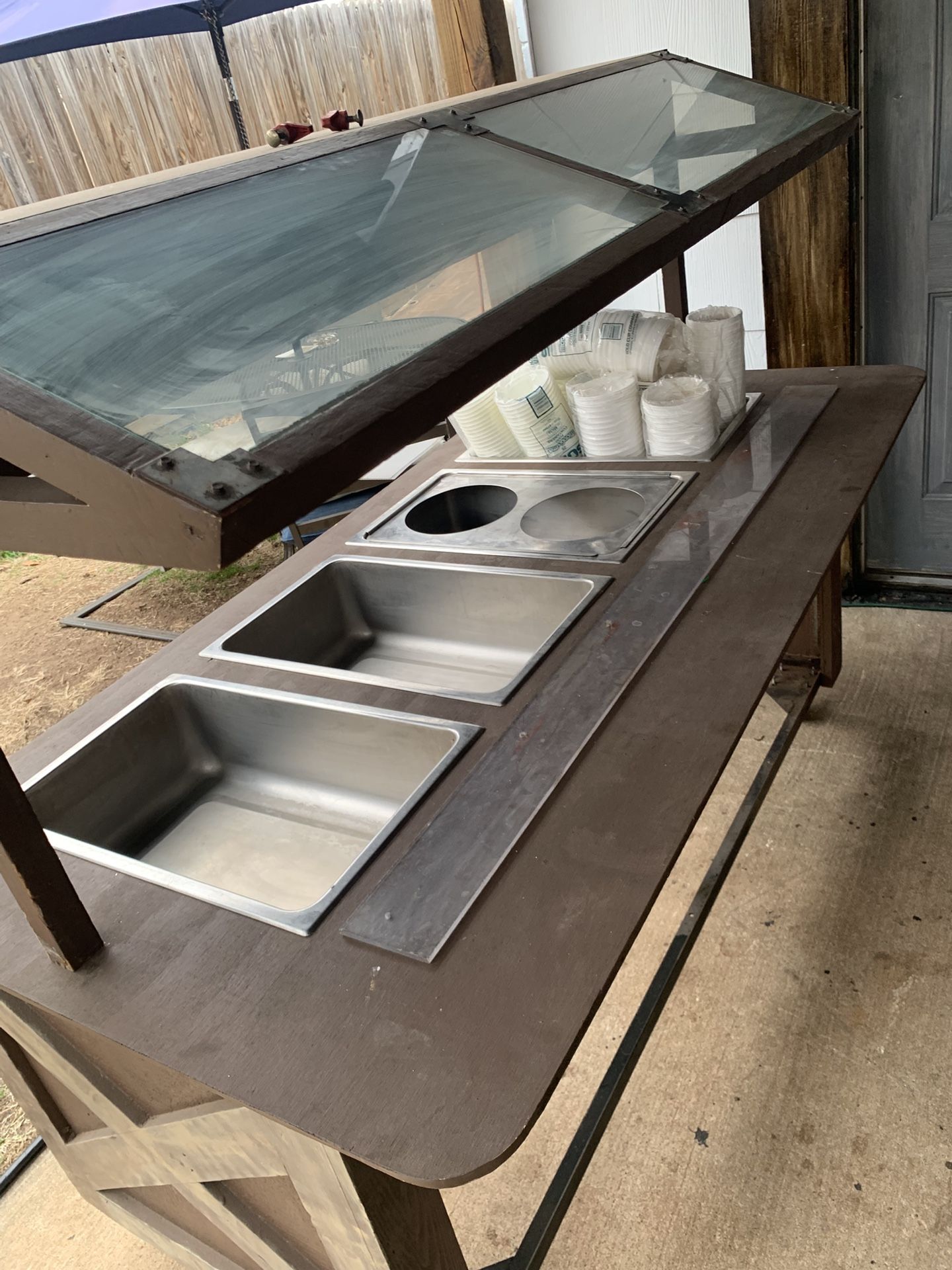 I have two heated buffet tables for sale that I purchased from a storage auction. Both units heat up and work perfectly! The larger buffet table just needs replacement knobs, which you can easily buy on Amazon for around $8–$20 for a 4-pack. Each table has built-in metal water wells (they do not come out). You simply add water to heat the food pans. You will need to purchase the food inserts separately, and those are very affordable. Both buffet tables are on wheels, making them easy to move and position wherever you need them. This is a great setup if you're starting your own catering or food business, or even if you host a lot of family gatherings and parties. They can easily be covered and stored in a garage when not in use. I wish I had the space to keep them because they would come in so handy for the parties I throw! I’m also including 7 extra industrial-size steamers with the sale. Everything is electric. Asking $1,200 for all of it.
