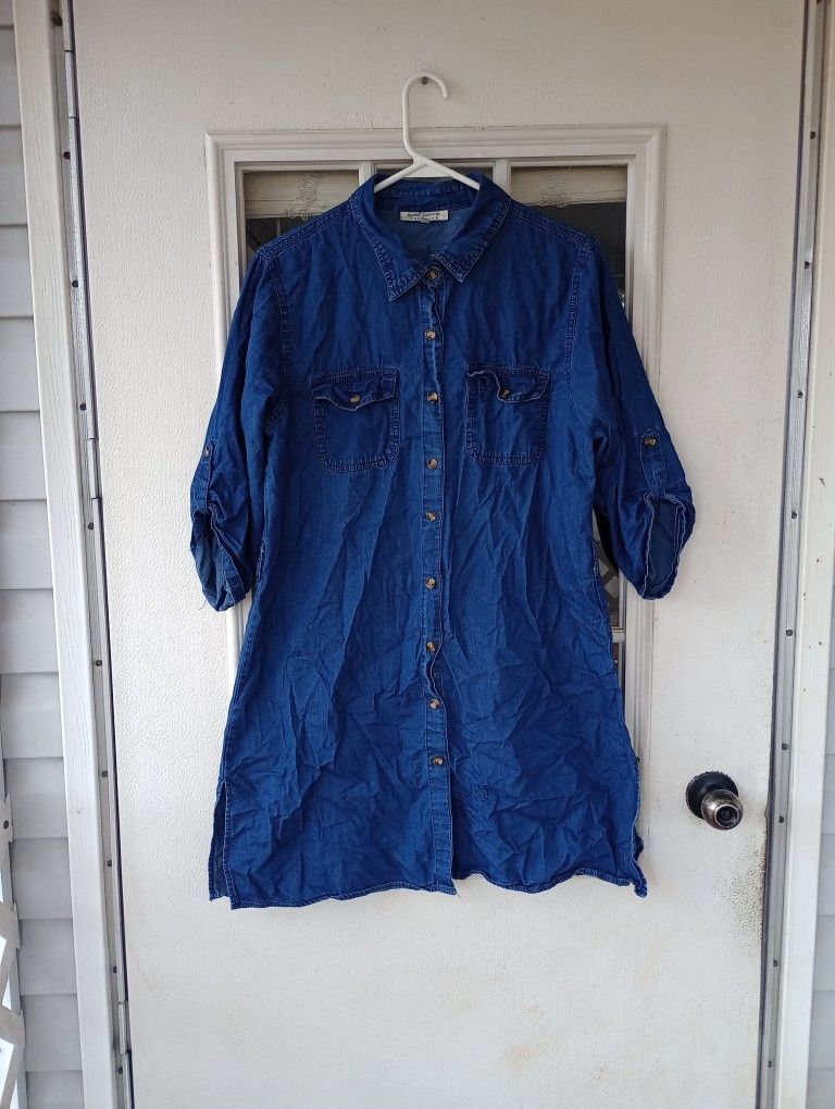 Speed Control New York Women's Blue Denim Button Down Shirt Dress XL
