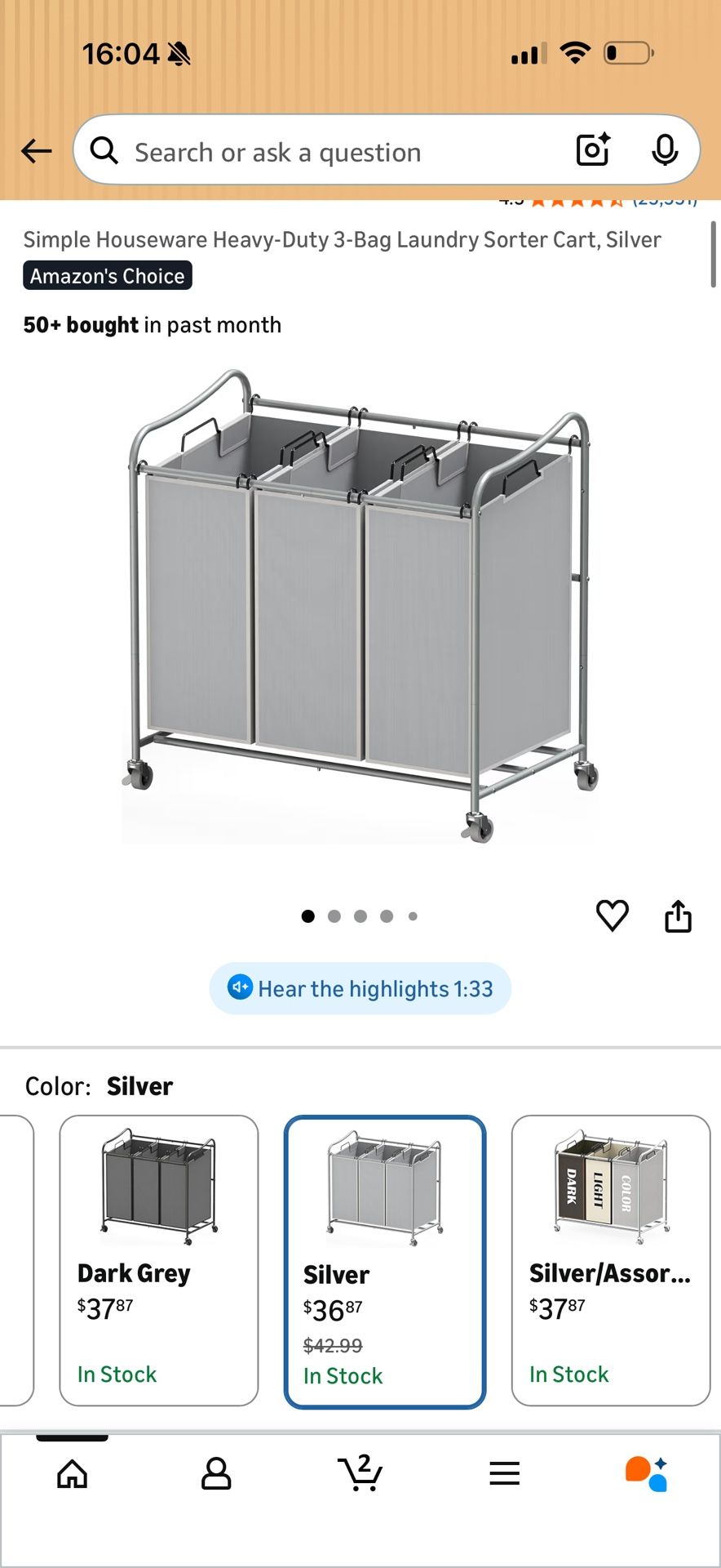 New Simple Houseware 3 bags laundry sorter. Comes unassembled in original packaging. Has all the metal frame parts and instructions.