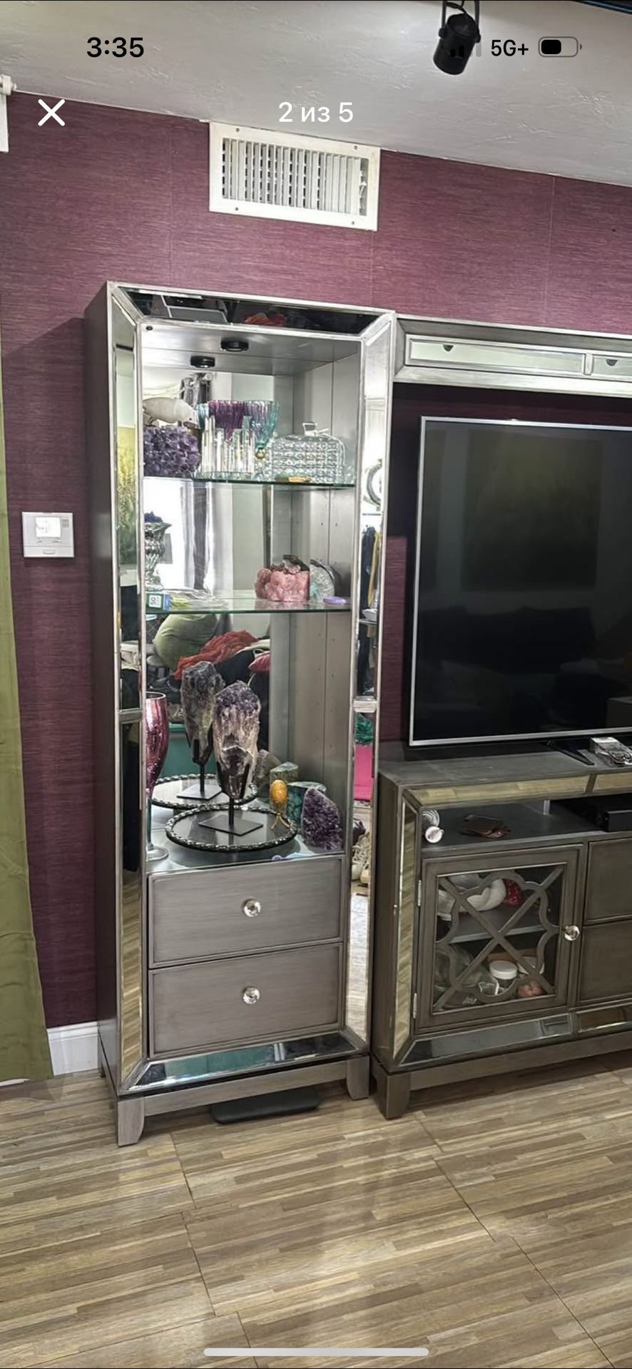 Silver/mirrored Entertainment Centre