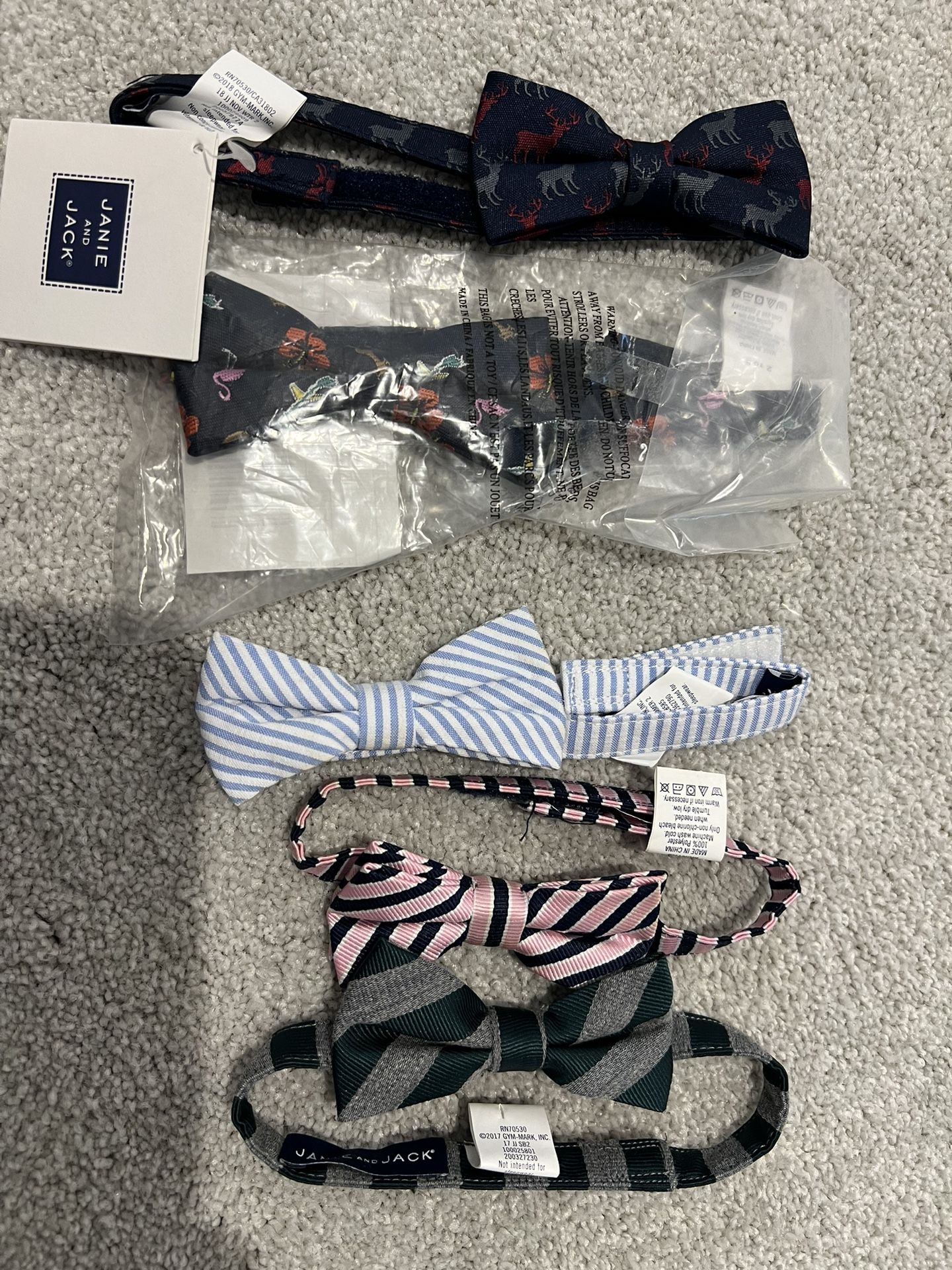 5 bow ties. 2 Brand New and 3 Used (almost new) All of them in size 2-5 except one in pink is size 0-24