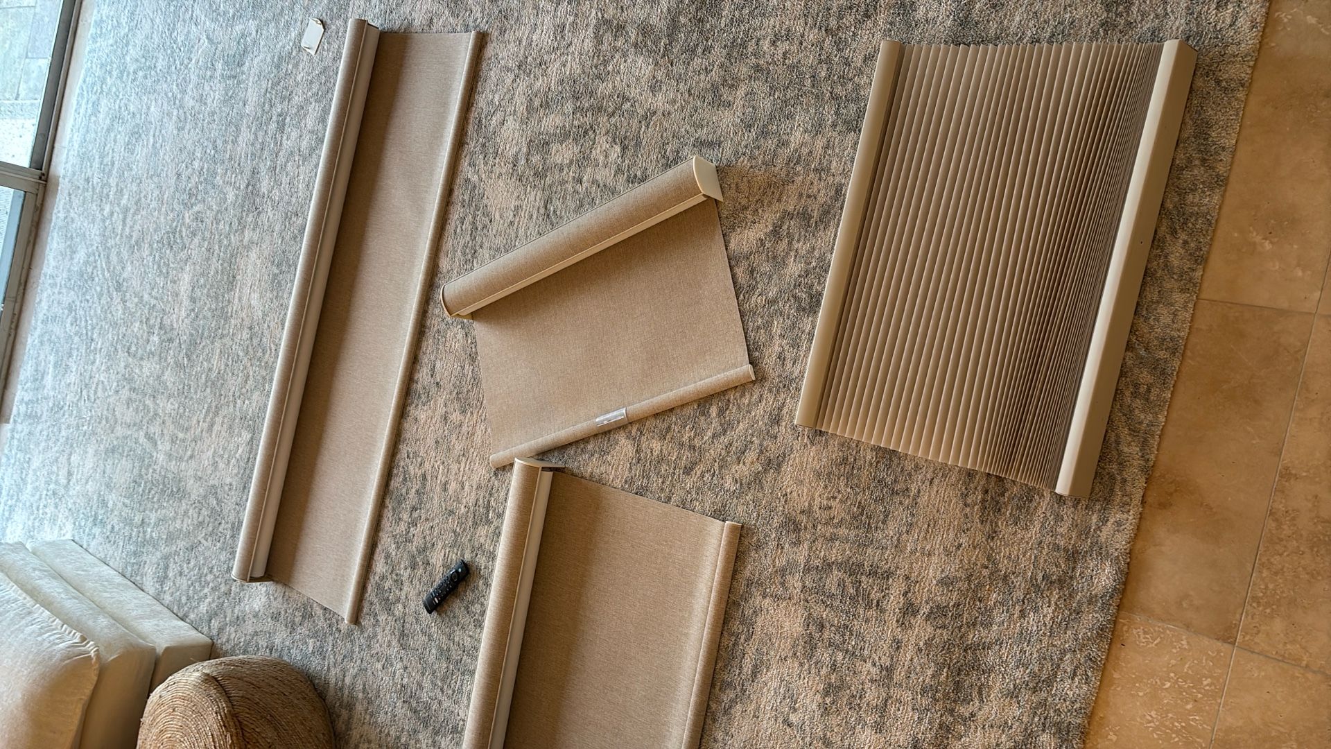 All Brand New with Hardware, never used. 3 custom blackout roller shades with valance header. Cordless. Very nice brand. A light khaki shade. We ordered these and of course measured wrong— save them from the landfill! Fits: 57.5 inch x 47 inch 27.5 inch x 47 inch 27 1/8 inch x 47 inch 1 Levolor Light Filtering in light khaki shade. 27 1/8 inch x 72 inch Hoping someone can make good use of these!