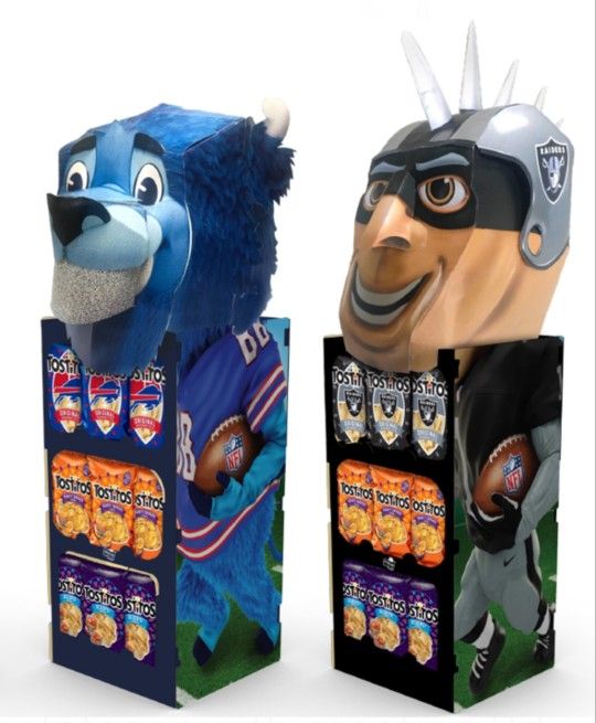 New in box Buccaneers display used in Publix for chips. Light cardboard mascot head on top like in the pictures but the Bucs mascot instead.