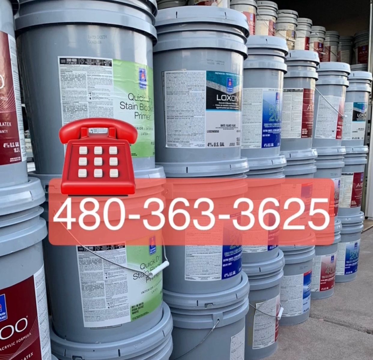 **480@363@3625**☎️ Llámame para más Información sobre colores y precios Pintura para Casas, trailas y bardas en diferentes tonos y precios Interior y exterior Tape, papel, caulking, rodos, brochas, sprayer tips, rags para limpiar, lijas, plástico, LOXON, Quick Dry stain blocking, PVA, flat semigloss y mucho más BRAND New paint buckets for ceilings and walls ⛔️DIFFERENT PRICES ALL DEPENDING ABOUT WHAT YOU NEED.