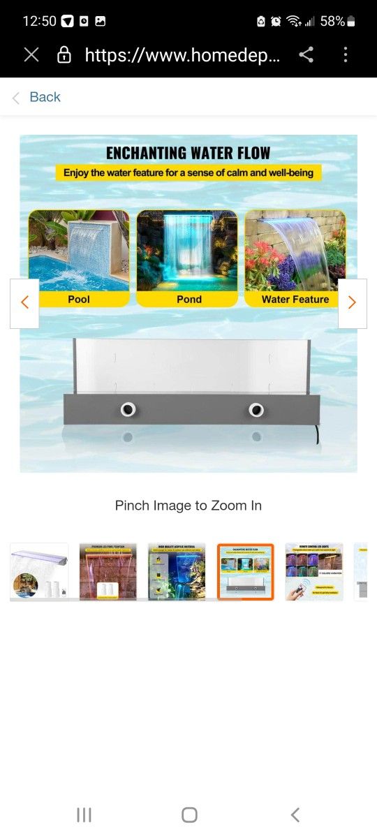 17 Colors Led Waterfall Spillway 23.6 x 3.2 x 8.1 in. Pool Fountain with Remote Pool Waterfalls for Inground Pools
