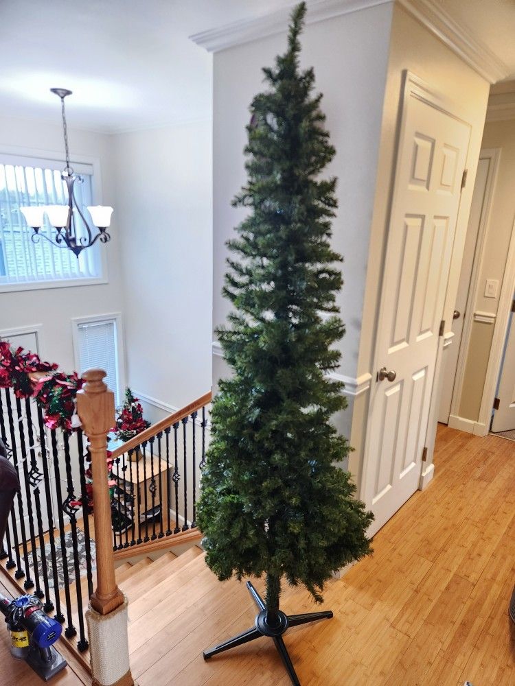 7-ft "Non lit" BRINKLEY PINE Artificial christmas tree.Comes a part into three pieces,comes with a stand. Very easy to put together in good condition. Just branches need to be straightened, because it's been folded in the box. Lights stopped working so I took them off. Located by Target in Marysville