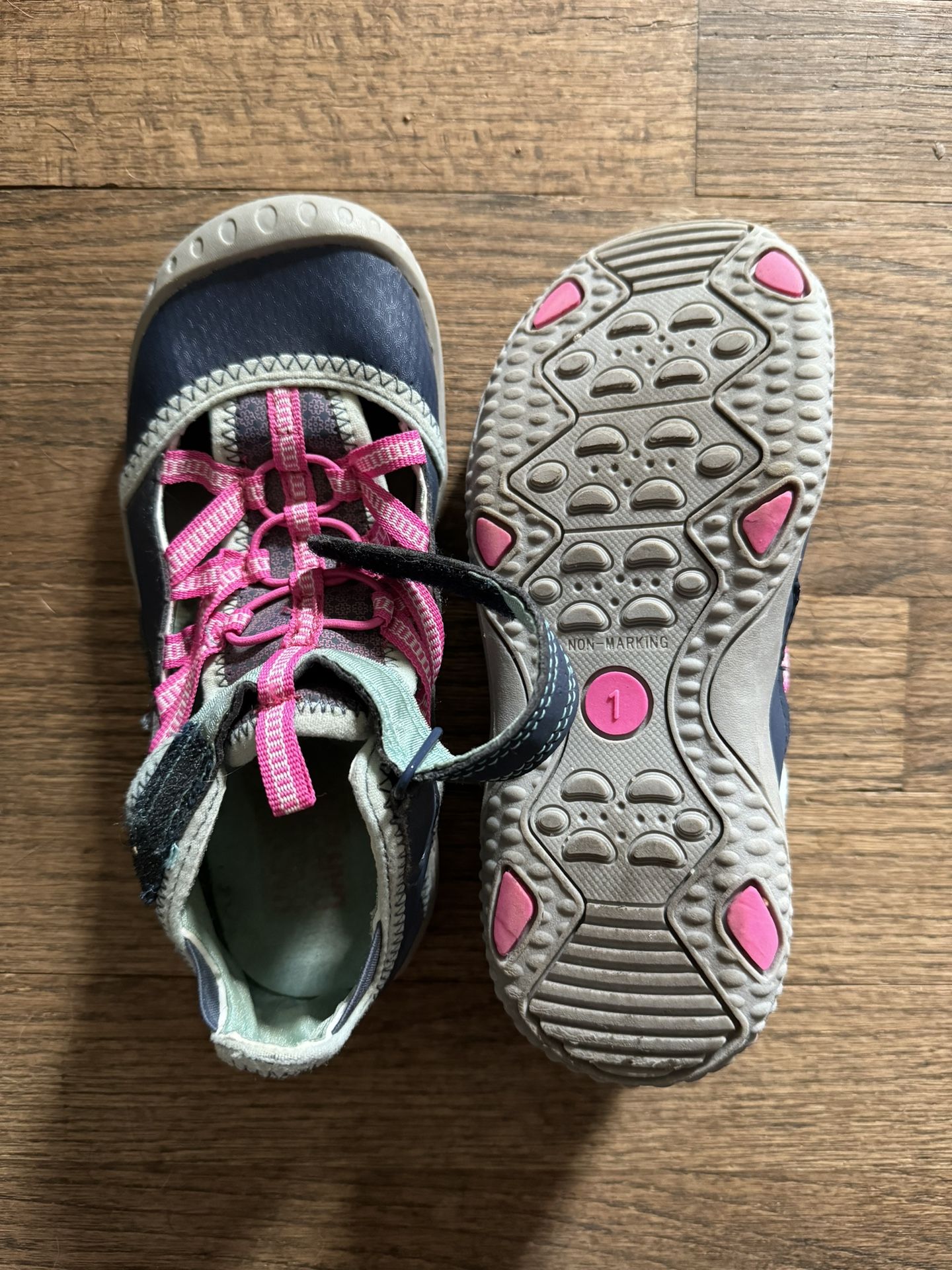 Girls size 1 blue and pink water shoes with Velcro. Easy to put on. Worn only once.
