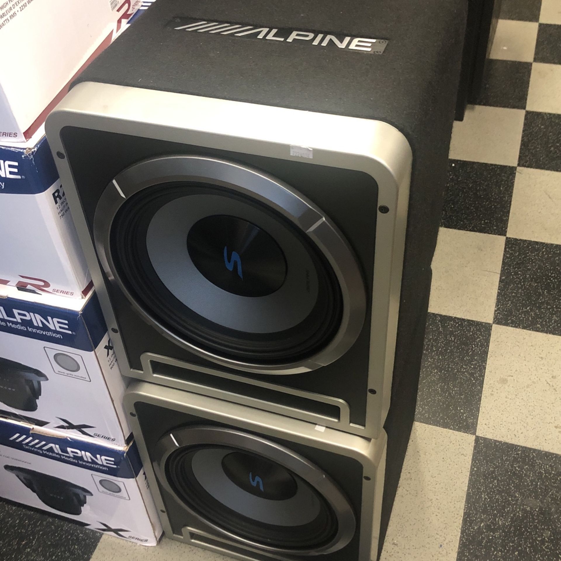 Get this bad ass sounding alpine subwoofer in alpine halo box! We beat online deals come and get the best prices on this sub! 600 watts