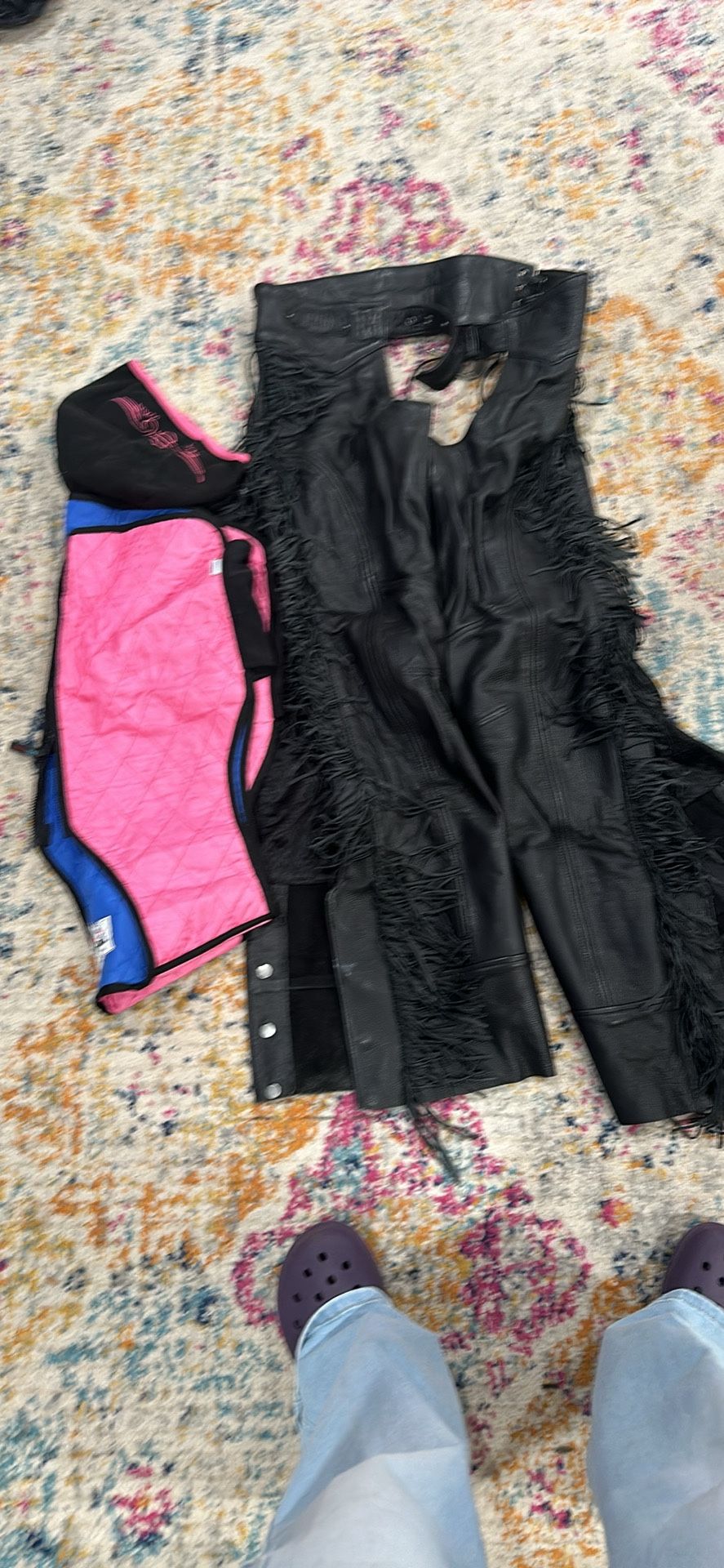 Chaps, cooling vest and a hat size large