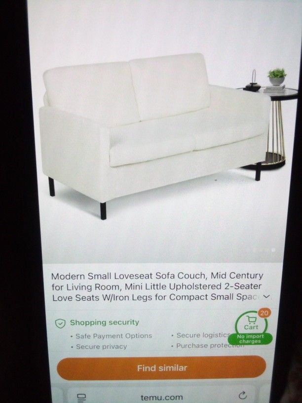 Cream Loveseat Sofa As in photos, NEW, Inside Box , new Wall Clock and Mini Small Table Lamp