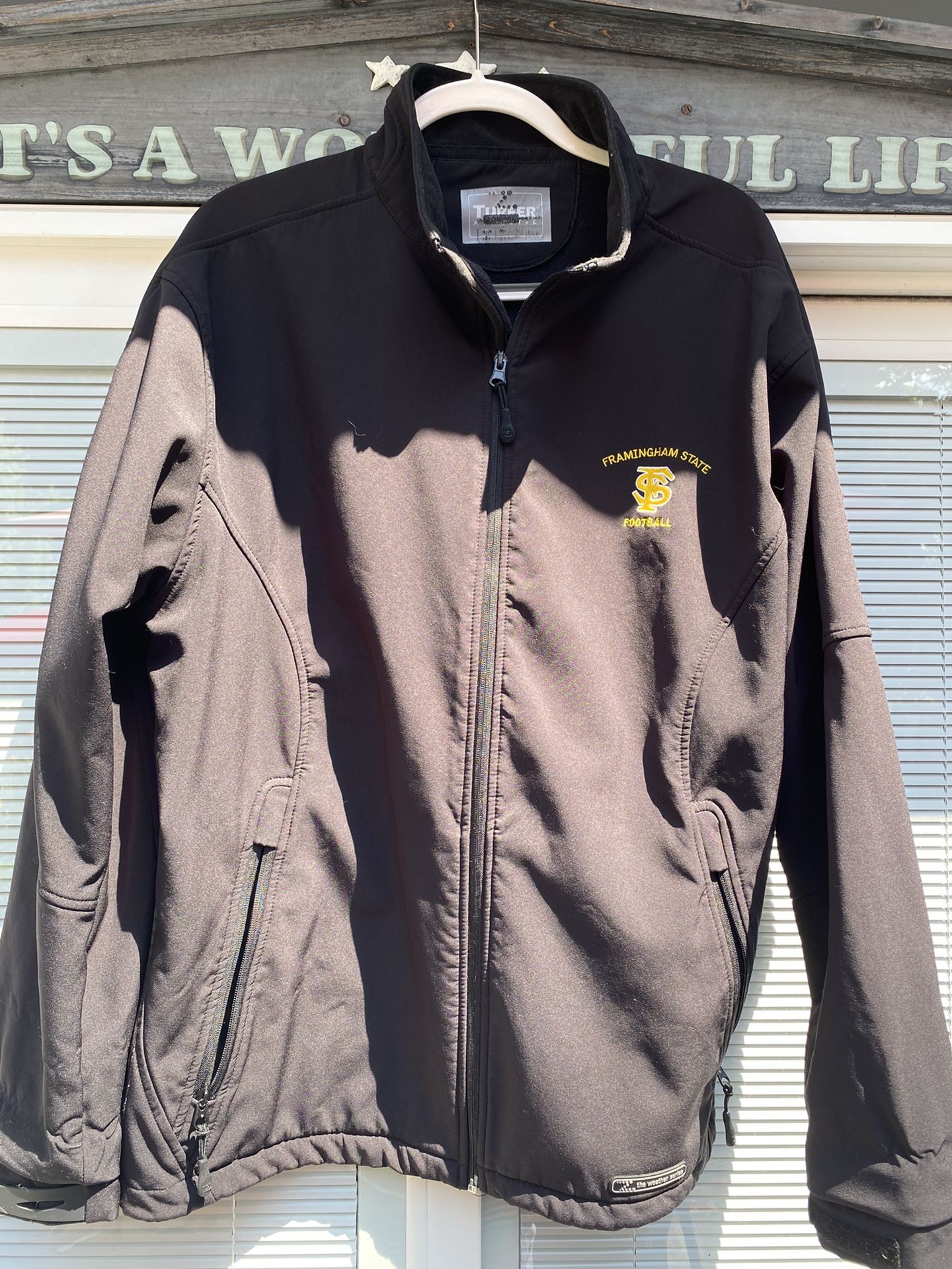 Black Turfer Framingham State football full zip coaches sideline jacket “the weather series” fall and winter Inside and outside pockets extra large XL