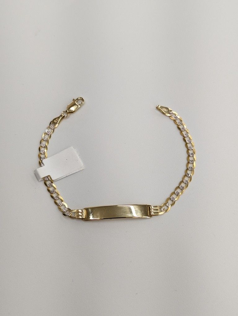 14kt real solid gold Cuban Diamond cut ID Bracelet 6 Inch total Length 6 mm wide 1.2 Inch long Cuban link 3.6mm wide 3.48 gm weight Figaro Link 3.7 mm wide Please check the picture carefully to understand the size of the bracelet 100% Authentic 14kt Gold Not a Gold Filled or Not a Gold Plated Never Change color or never fade never tarnish Comes in a gift box