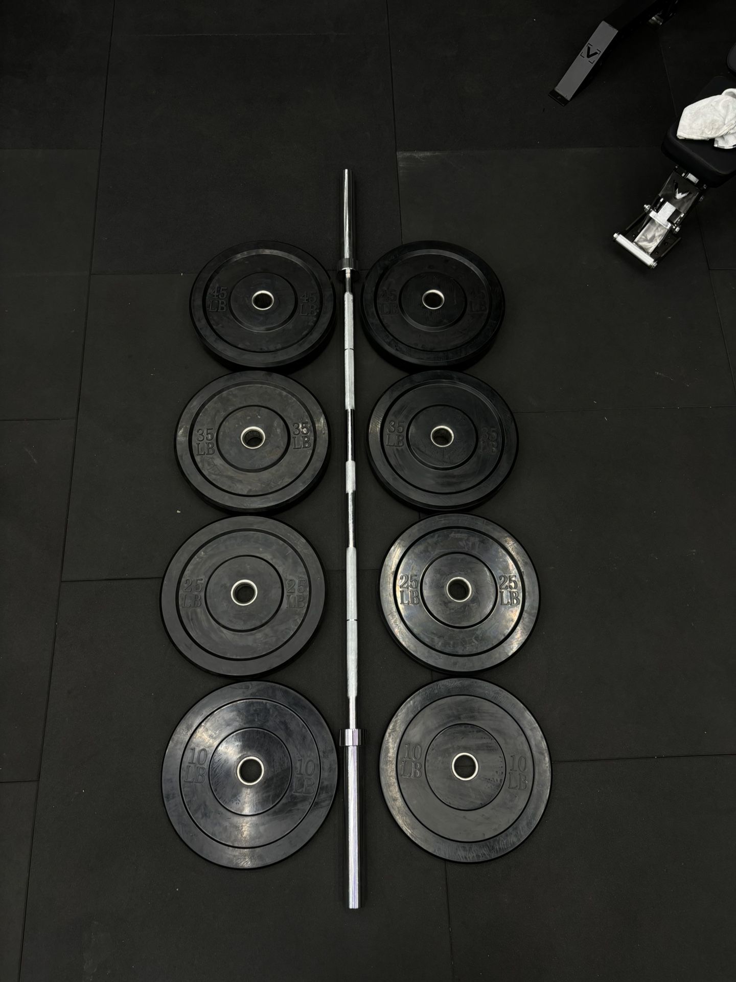 Pair of 45lb,35lb,25lb,10lb and an Olympic Barbells for a great deal $420+tax π New in box! Click our profile for more gym equipment listings! Credit Cards / Cash / Venmo / Zelle / Financing Available! Visit our showroom to view all of our all of our other products in person! Open 7 days a week, and no appointments necessary to visit! Hours of Operation: Weekdays 9am-6pm Weekends 9am-5pm