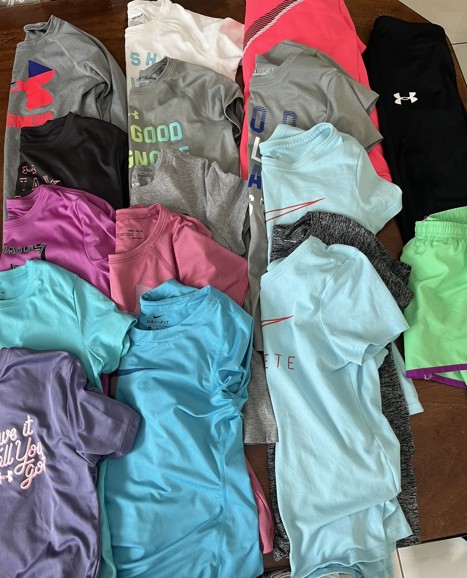 Brands include Under Armour and Nike Normal wear and tear but most are like new Cash transaction only All proceeds will go to charity All items are $4.00 each. I will no go below that price.