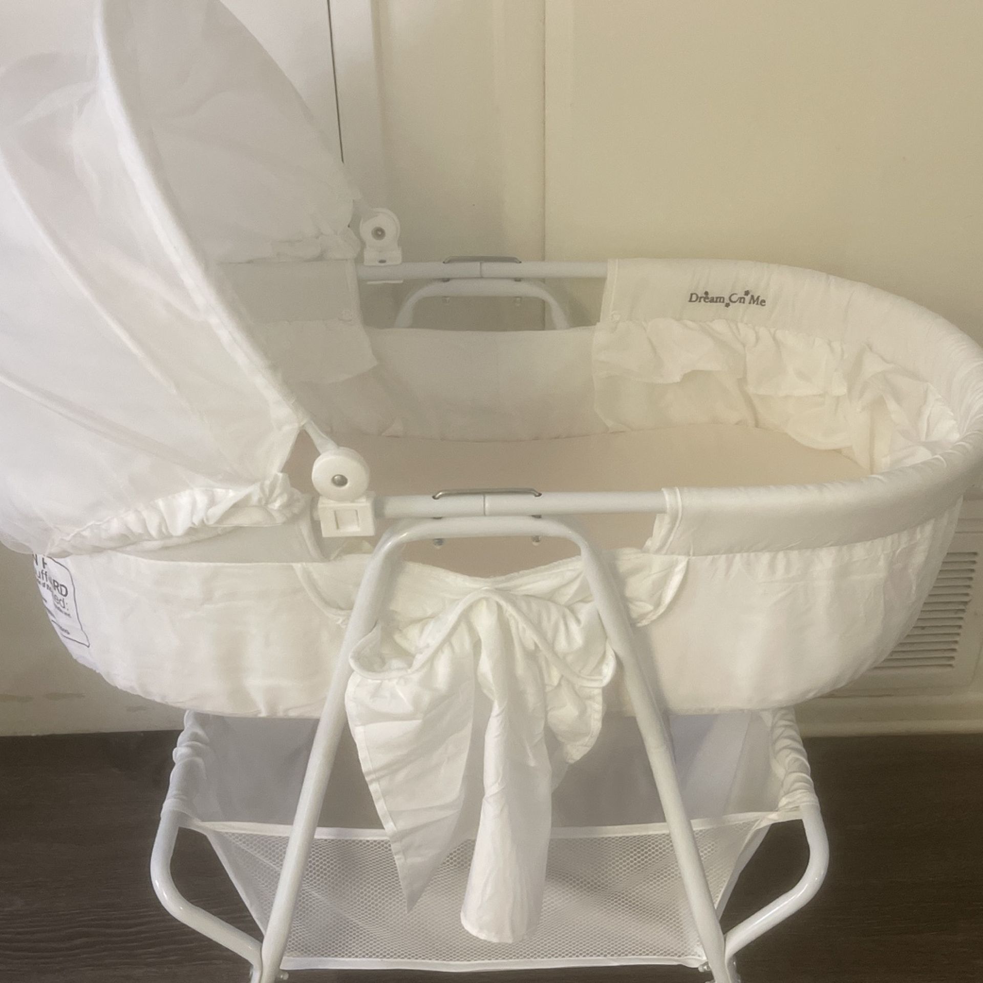 Beautiful baby bassinet. Great Condition. When you want to do dishes or clean up the house it is perfect to put you little one in there so can roll through the house.