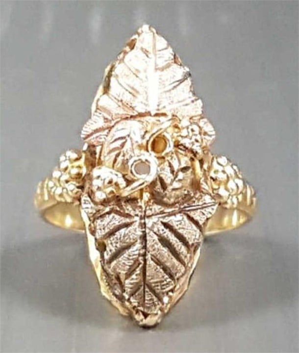 10k Black Hills Gold Woman’s Ring Detailed Leaf & Grape In Rose And Yellow Gold