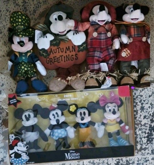 HI IM SELLING A COLLECTABLE Mickey Mouse Fantasia Sorcerer's Apprentice bundle lot you getting the set in the box the box has some wear its been sitting in my storage and the fall holiday dolls some still have tags all for a low price Goodluck great for collectors and disney lovers great deal