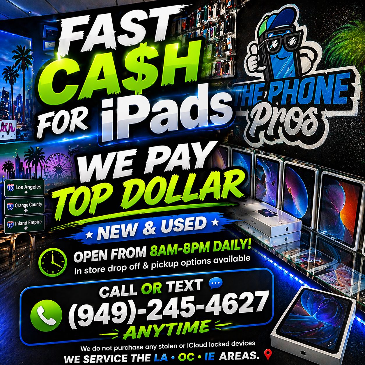 π₯π± WELCOME TO THE PHONE PROS π±π₯ π° WE PAY TOP DOLLAR β FAST & EASY CASH! π° ππ TURN YOUR DEVICES INTO CASH TODAY: π iPhones 7 β 17 Series & 17E βοΈ Models 7β12 must be carrier unlocked βοΈ Must be iCloud free βοΈ GOOD OR BAD CONDITION β WE BUY BOTH! π΅ π² iPads (10th Gen β Latest iPad Pro M5) πΈ π» MacBooks (2020 MacBook Air β Latest 2026 M5 Pro Models) π΅ π± Samsung Devices S Series β’ Z Fold β’ Z Flip πΈ π² Google Pixel Devices π΅ βββββββββββββββββββ π CALL OR TEXT ANYTIME π (949) 245-4627 π π¬ FREE QUOTES IN MINUTES! π OPEN DAILY: 8AM β 8PM π βββββββββββββββββββ π₯ WE BUY ALL CONDITIONS: βοΈ UNLOCKED βοΈ SIM-LOCKED / FINANCED βοΈ BROKEN β YES, STILL ACCEPTED! βΌοΈπ° βββββββββββββββββββ π¨ IMPORTANT: We do NOT purchase stolen or iCloud locked devices. βββββββββββββββββββ π΅ GET PAID TODAY β NO GAMES, NO LOWBALLS π΅ π₯ **THE PHONE PROS = FAST CASH + TRUSTED SERVICE Sell electronics Sell MacBook Sell Apple Watch Cash for electronics Sell iPhone near me iPhone buyers Phone buyer Cash for phones Sell my phone Cash 4 phones iPhone Buyer near me Phone buyer near me Sell my iPhone iPhone 7 IPhone X IPhone 11 12 13 14 15 16 17 12 Pro iPhone 12 Pro Max iPhone 13 Pro iPhone 13 Pro Max iPhone 14 Pro 14 Pro Max iPhone 15 Plus iPhone 15 Pro iPhone 15 Pro Max iPhone 16 iPhone 16 Plus iPhone 16 Pro iPhone 16 Pro Max iPhone 17 iPhone 17 Air iPhone 17 Pro iPhone 17 Pro Max iPhone 17 E Samsung S23 Samsung S23 Ultra Samsung s24 Samsung s24 Ultra Samsung s25 Samsung s25 Ultra Samsung s26 Ultra Samsung s26 Google pixel 10 pro xl Google 9 pro 8 IPad M4 M5 WiFi WiFi + cellular ipad A17 ipad a16 ipad10th gen MacBook MacBook Pro 16β 13β 13 inch 16 inch 15 inch 11 inch 11β Nike Jordan adidas gold 14k 18k 24k 22k 14kt 18kt 24kt 22kt oro jewelry amiri bape hellstar Nike Jordan Gucci Louis Vuitton Cartier chrome hearts vale Los Angeles lakers tickets