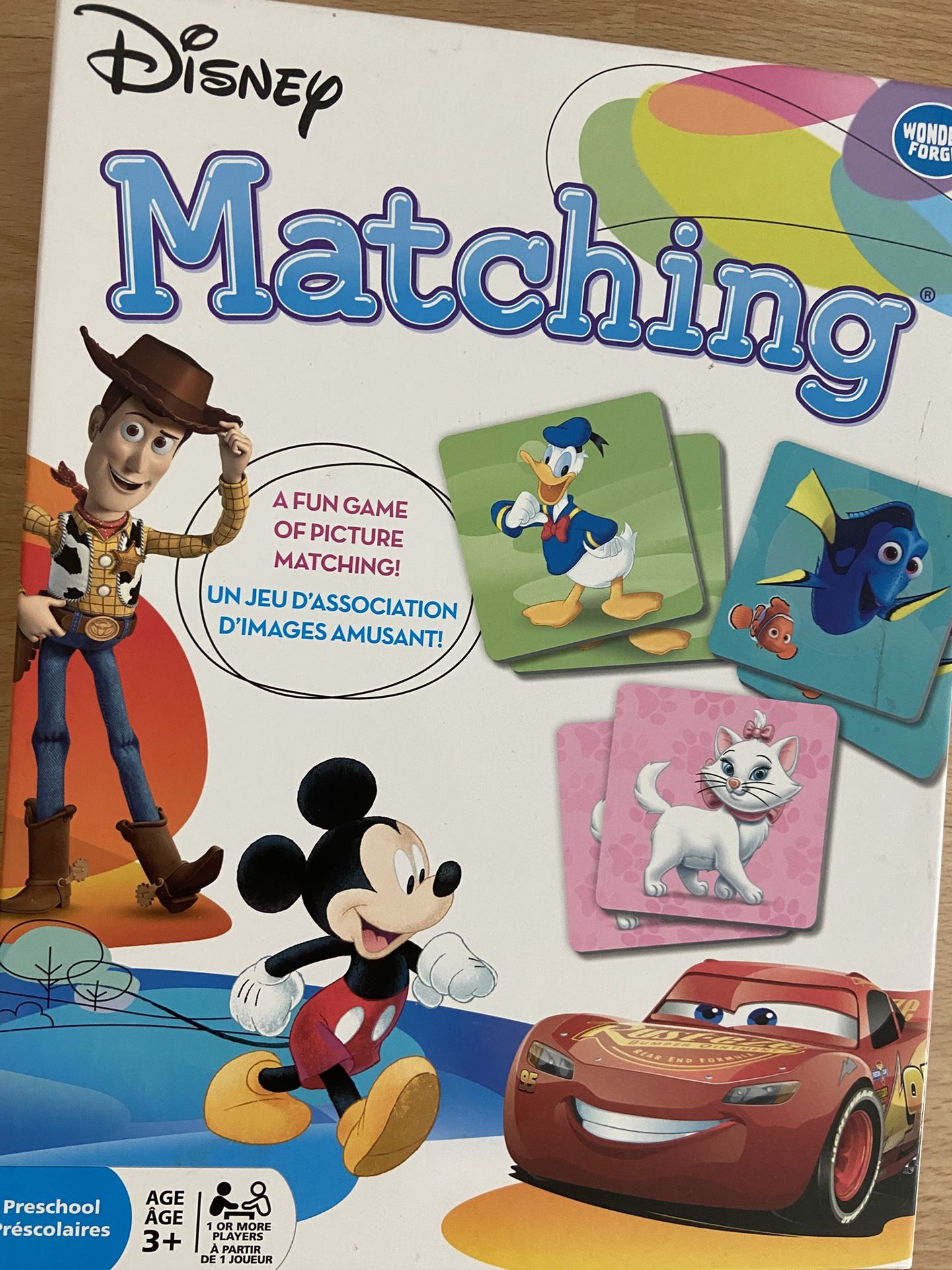 This fun game picture matching card game is the perfect tool for developing brains suitable towards children over the age of 3 - preschool years. Match your favorite Disney Characters side by side, up and down, over and under. Your child will be addicted to this game ! It has been opened and used quite a few times but it is in great condition with instructions- no tears or rips and there are no missing pieces. Retail price is about $10 and I’m selling for about $7