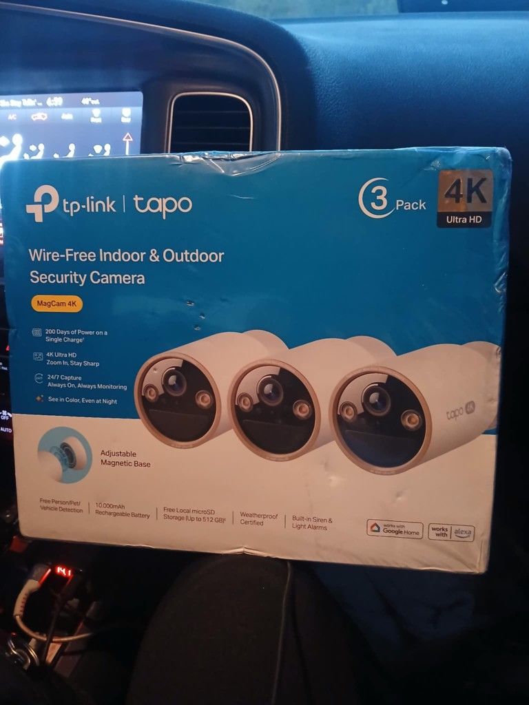 Wire-free indoor out door camera w/ Adjustable magnetic base. See everything in color both day&night. 24/7 capturing, always on and always monitoring. 4k HD. Zoom in Free person/pet/vehicle detection. Up to 512GB free local storage. Weather proof and Built in alarms and sirens.