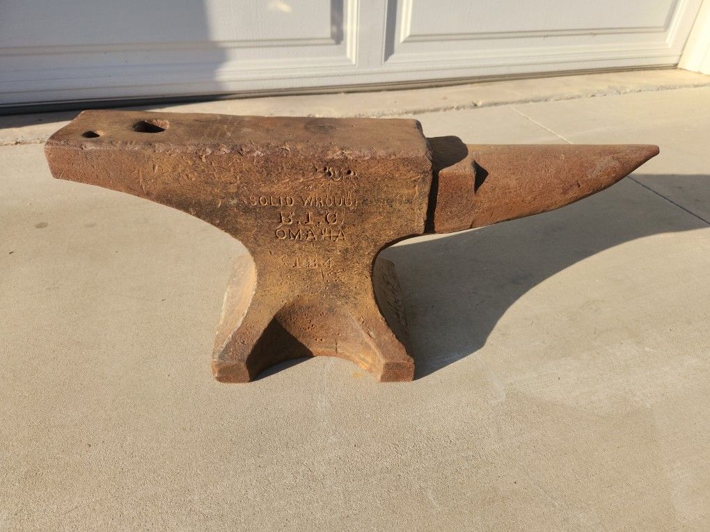 Solid Wrought Anvil. B.I.C. Omaha. True Americana at its finest. 124 pounds. Made by Hay Burden. Great rebound. Excellent ring tone. Great antique, for show or use.