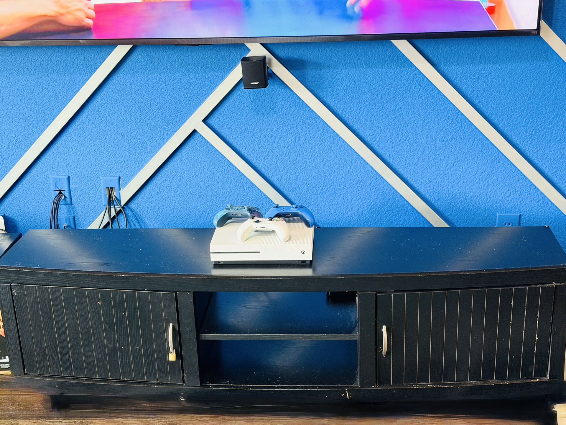 Gently used Black TV Table. Used it with 75 inch TV. Dimensions: 66 inches Wide, 19 inches height, 13 inches depth. Cash only. Pickup in Frisco.