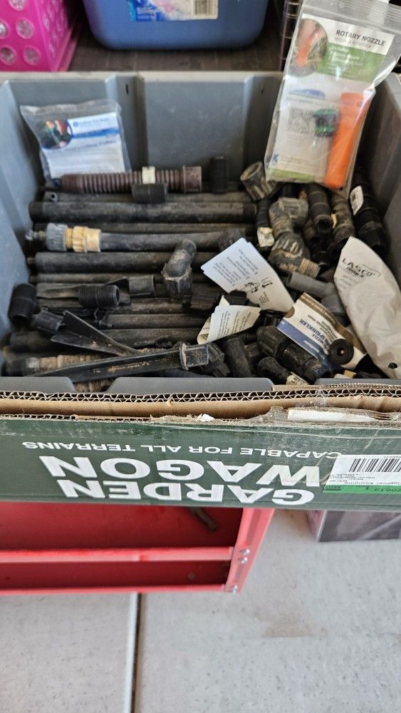 All kinds of parts for sprinkler repair - risers, sprinklers, drip hoses. Lots of items for the landscaper to use. Cash only. Must pick up.