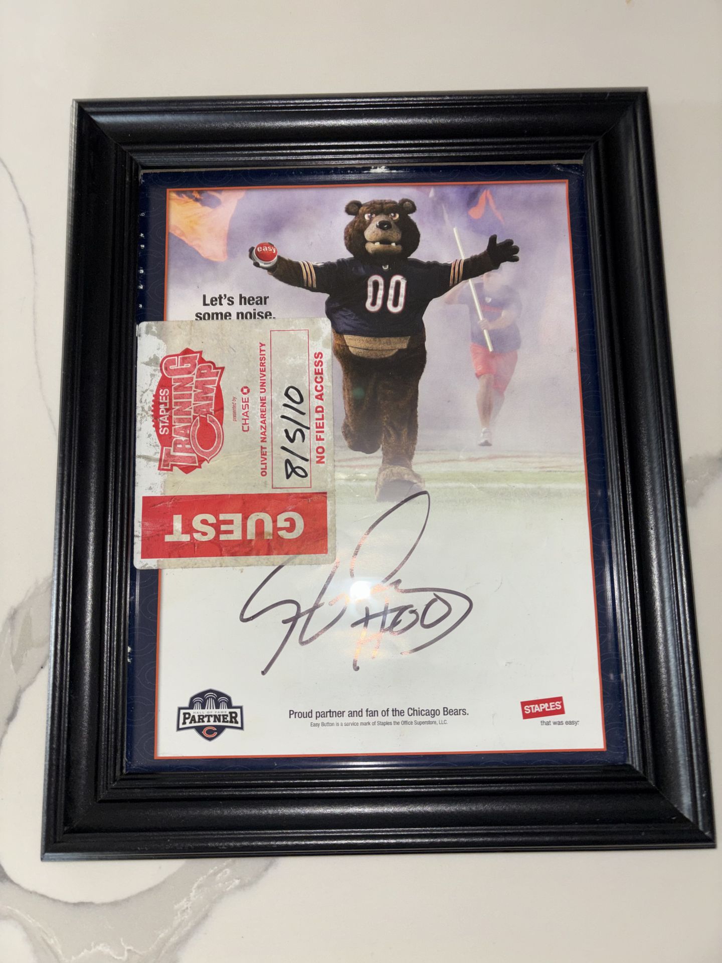 Chicago Bears mascot, Staley Da Bear signed and framed.