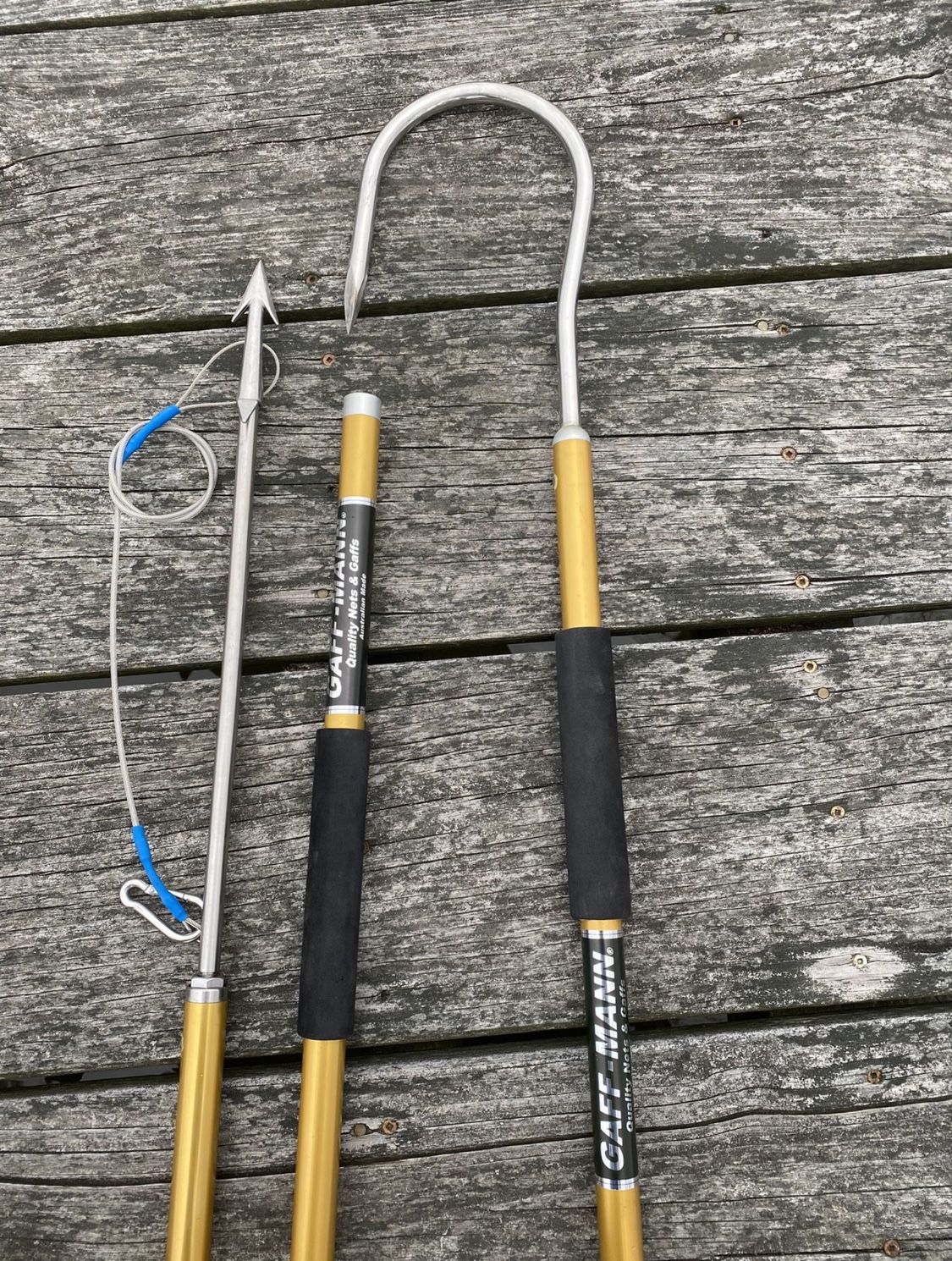 Brand New Never Used, Matching Gaffman Harpoon and Gaff Set. Dart is rigged, all you need is a basket with line and a small buoy or float. Tuna are here!