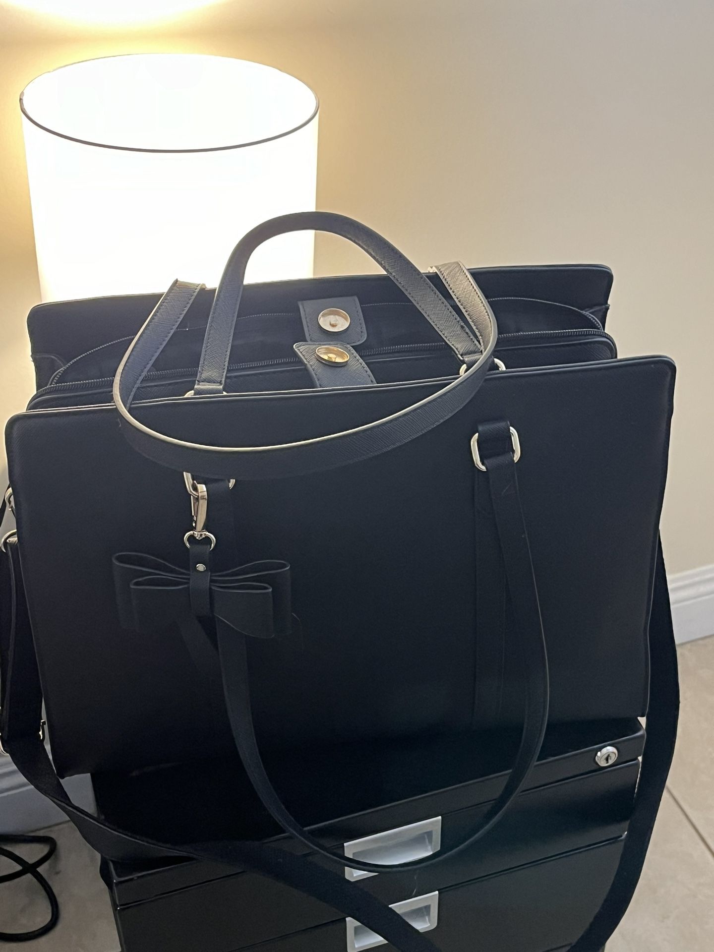Pockets inside Slot for laptop 15’ Shoulder strap Crossbody strap Lightly used