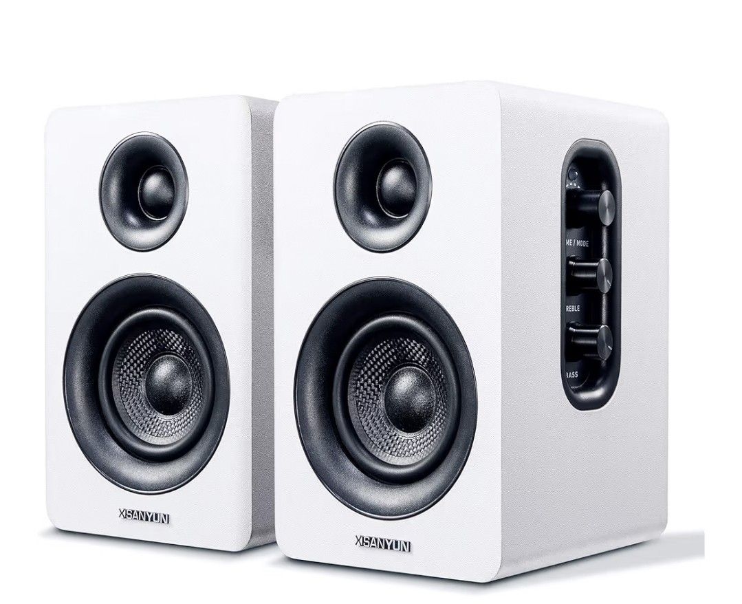 Sanyun SW208 3" Active Bluetooth 5.0 Bookshelf Speakers – 60W Carbon Fiber Speaker Unit - Built-in 24bit DAC Dynamic 3D Surround Sound 2.0 Computer PC Monitor Gaming (Pair, White)