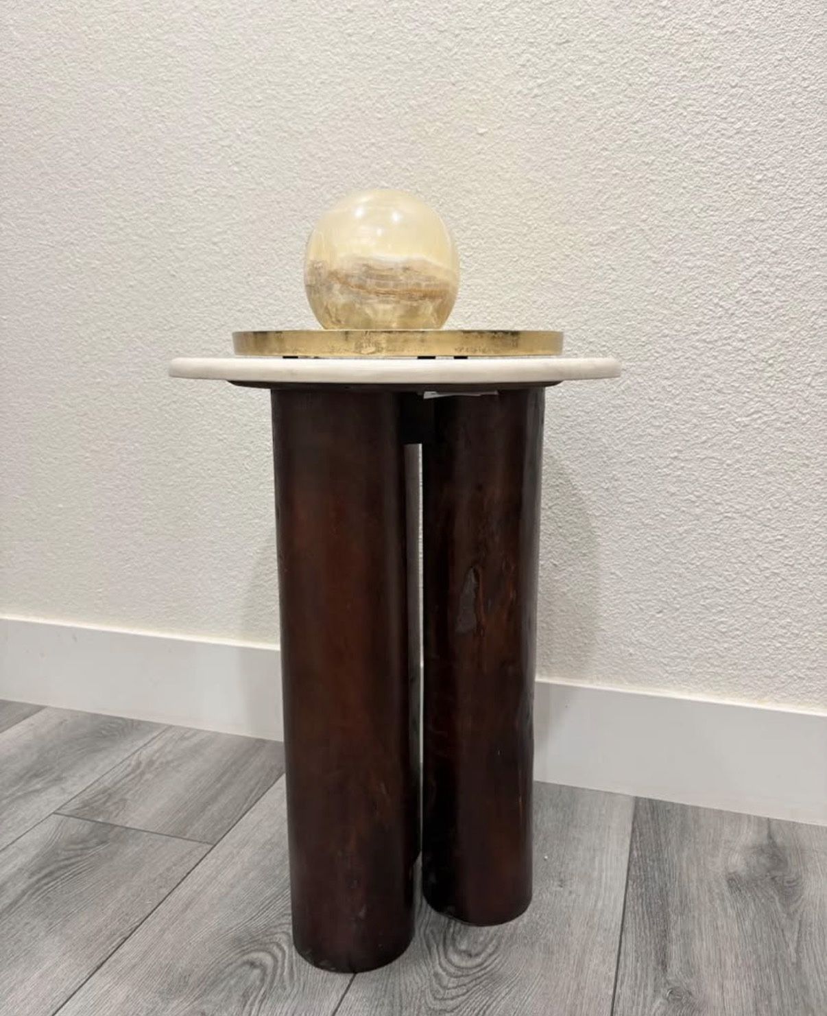Elegant side table featuring three real teakwood log legs and an authentic cream-colored marble top. New condition. Approximate Dimensions: 22” Height 16” Depth Payment Method: CASH Preferred. Venmo and Zelle OK. Pick up Location: San Jose 95111 Optional Delivery: Delivery available with upfront delivery fee via Venmo or Zelle. Feel free to check out my other listings for other furniture and decorative items. Keywords: CB2, Crate and Barrel, West Elm, Lulu and Georgia, Arhaus, Restoration Hardware, Pottery Barn, Accent Cabinet, Storage Cabinet, Nightstand, Sideboard, Mid-Century Modern, Wood Furniture, Arched Design, Gold Pulls, Designer Furniture, San Jose, Midcentury Modern