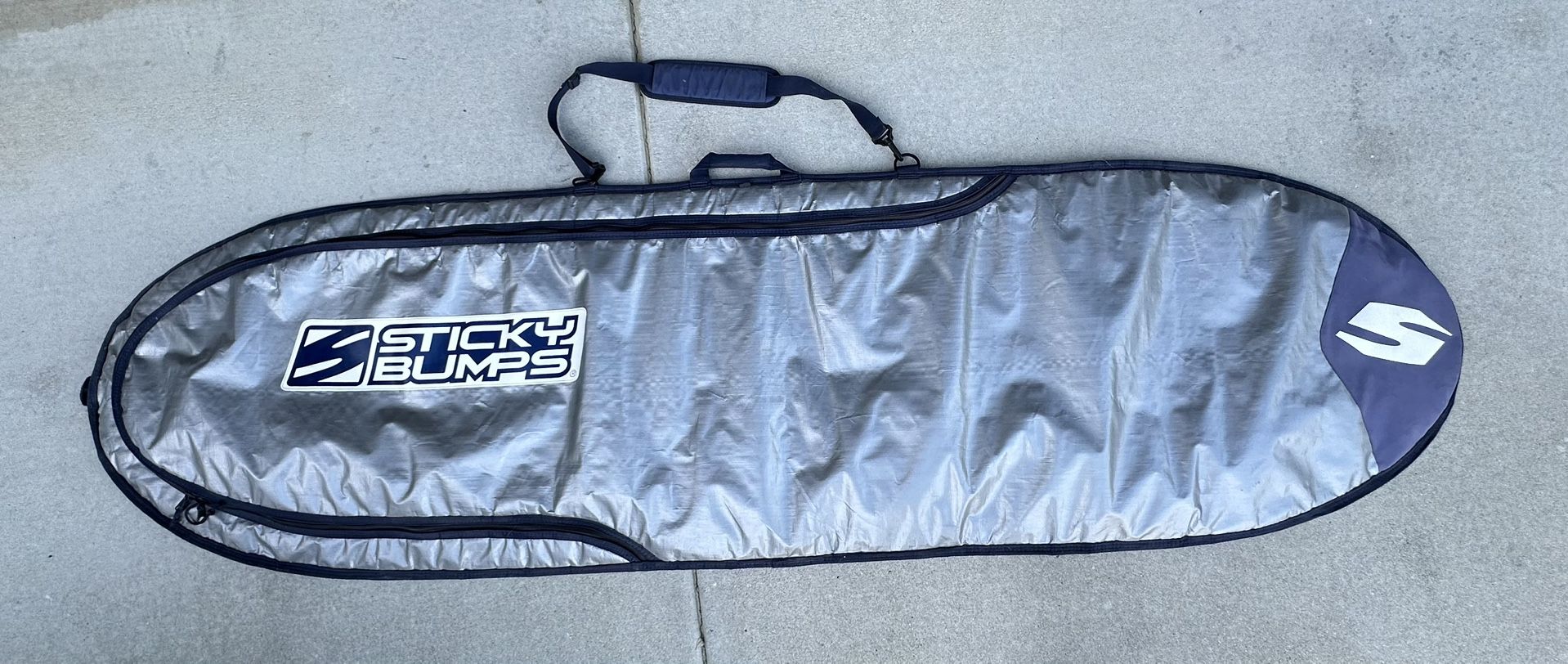 Brand new, never used Sticky Bumps 8ft surfboard cover. Perfect for protecting your board from sun, dings, and heat. ✔️ Fits up to 8’ board ✔️ Reflective material helps keep board cool ✔️ Durable zipper + carrying strap ✔️ Lightweight and easy to travel with ✔️ Clean, like-new condition Great for daily use or travel—just never ended up needing it.