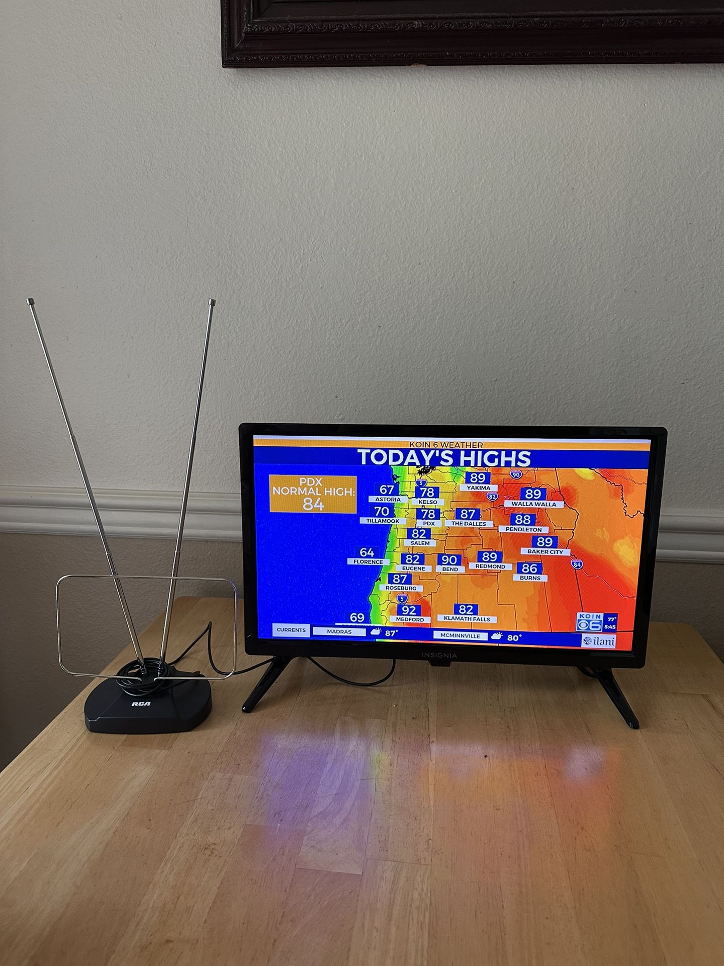 Insignia 19” LED TV with Antenna – Great Condition Selling an Insignia 19-inch LED TV (model NS-19D310NA21) in excellent working condition. Comes with a digital RCA antenna for watching free over-the-air channels. Perfect for a bedroom, kitchen, or as a backup TV. • Model: NS-19D310NA21 • 720p HD resolution • HDMI, AV, and coaxial input • Manufactured in March 2020 • Includes power cord and antenna • Clear picture and great sound Ready to plug in and use. Pet- and smoke-free home.
