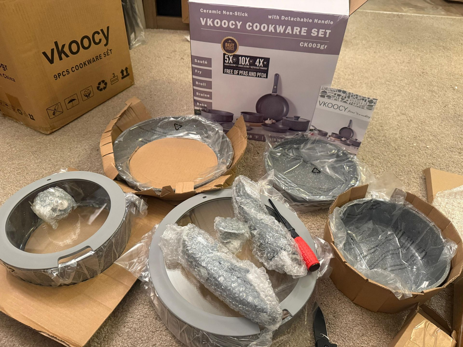 Non Stick Pots and Pans Set with Removable Handle, Ceramic Cookware Set Detachable Handle, 5pcs Induction Kitchen Camping Stackable Pots Pans, Dishwasher/Oven Safe, Black, PTFE/PFOA/PFAS-Free New sealed packages Pick up Belmont and broadway Chicago Check out others sets in my account . Any lower offers will be ignored