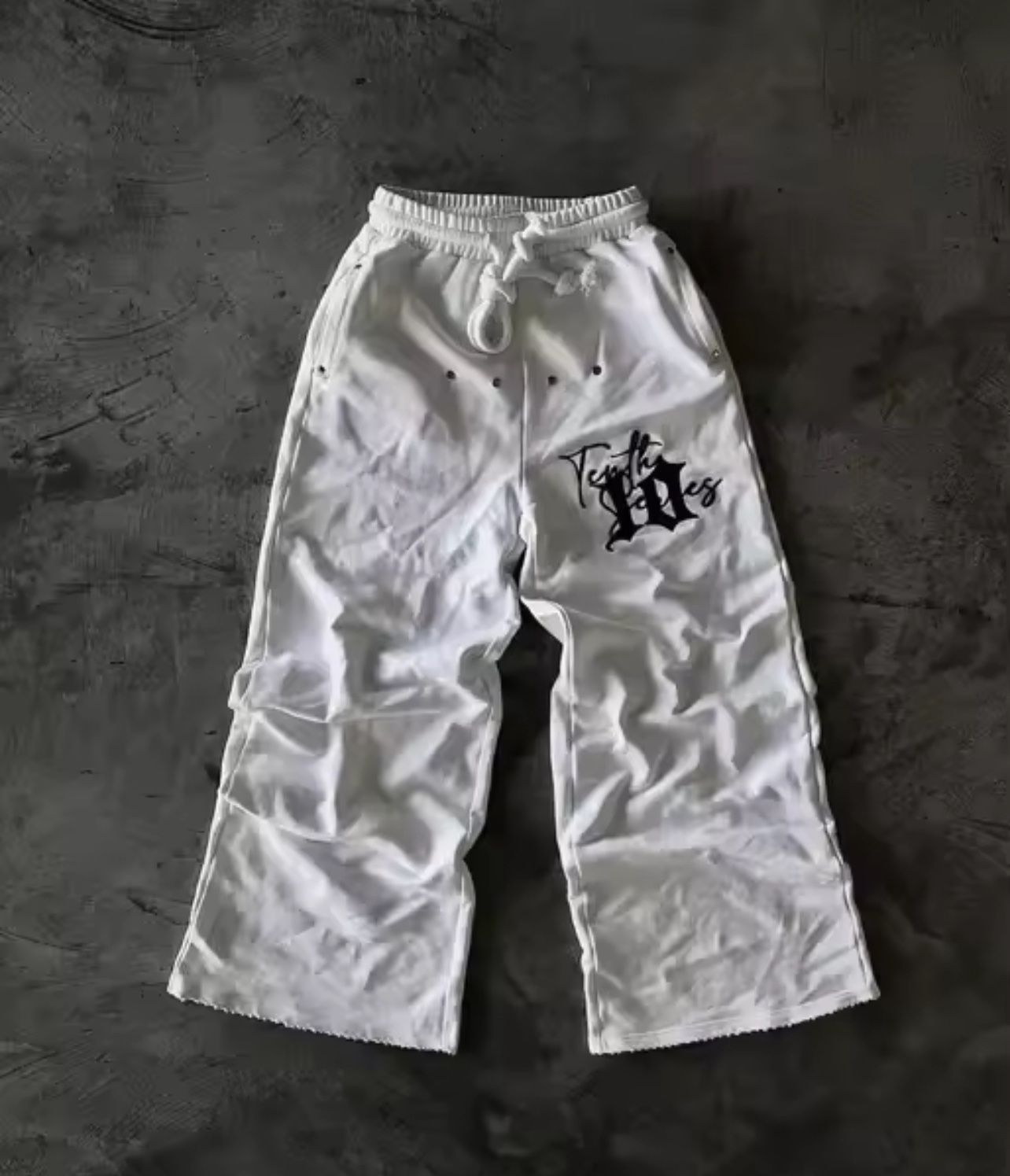 Hip Hop Pants Men Letter Patch Retro Double Layer Design Baggy Elastic Waist Jogging Casual Pants Sweatpants White wide leg cargo pants with black logo #cargo